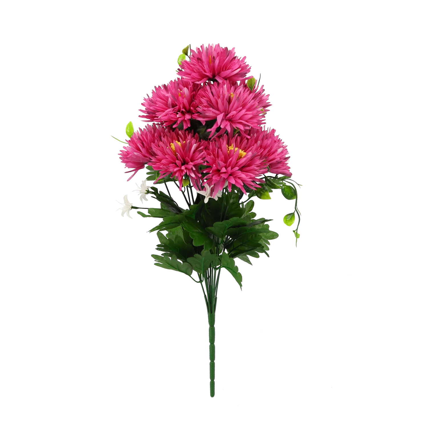 Poživite svoj dom ali pisarno z brezčasno cvetlično dekoracijo, ki nikoli ne oveni. Umetna krizantema v obliki bogatega šopka ponuja realistične detajle cvetnih lističev, naravno zelene liste in univerzalno mero 50 × 25 × 25 cm za enostavno aranžiranje v večino vaz.