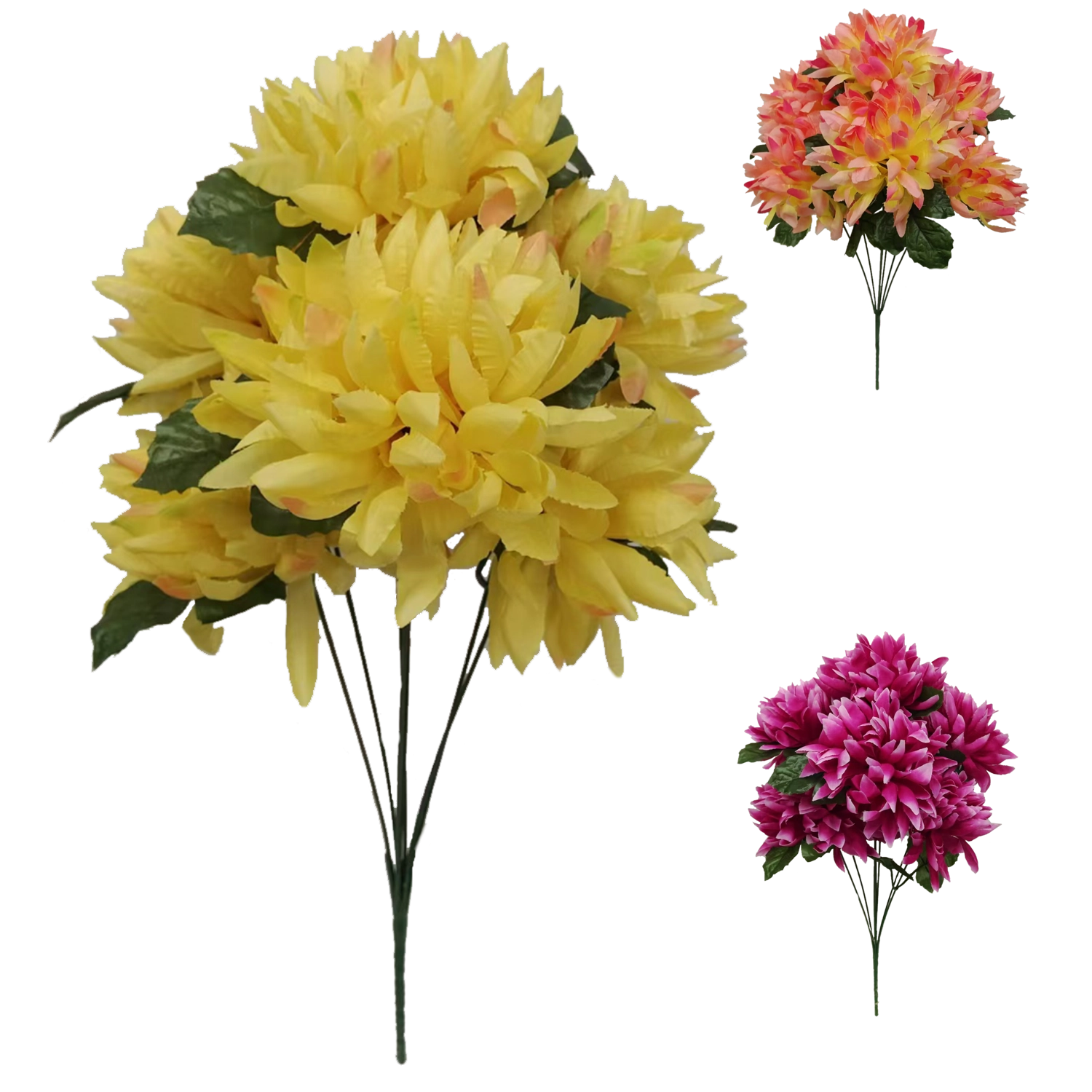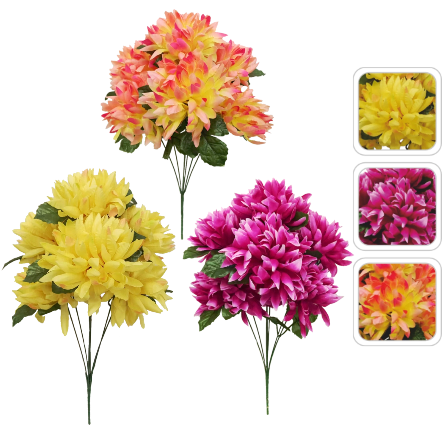 Prepričljivo izdelan šopek krizantem je idealna izbira za vse, ki želijo lepoto cvetja brez zalivanja in nege. Visoka kakovost izdelave ter realistične podrobnosti cvetnih lističev poudarjajo naraven učinek v vazi in dekoracijah.