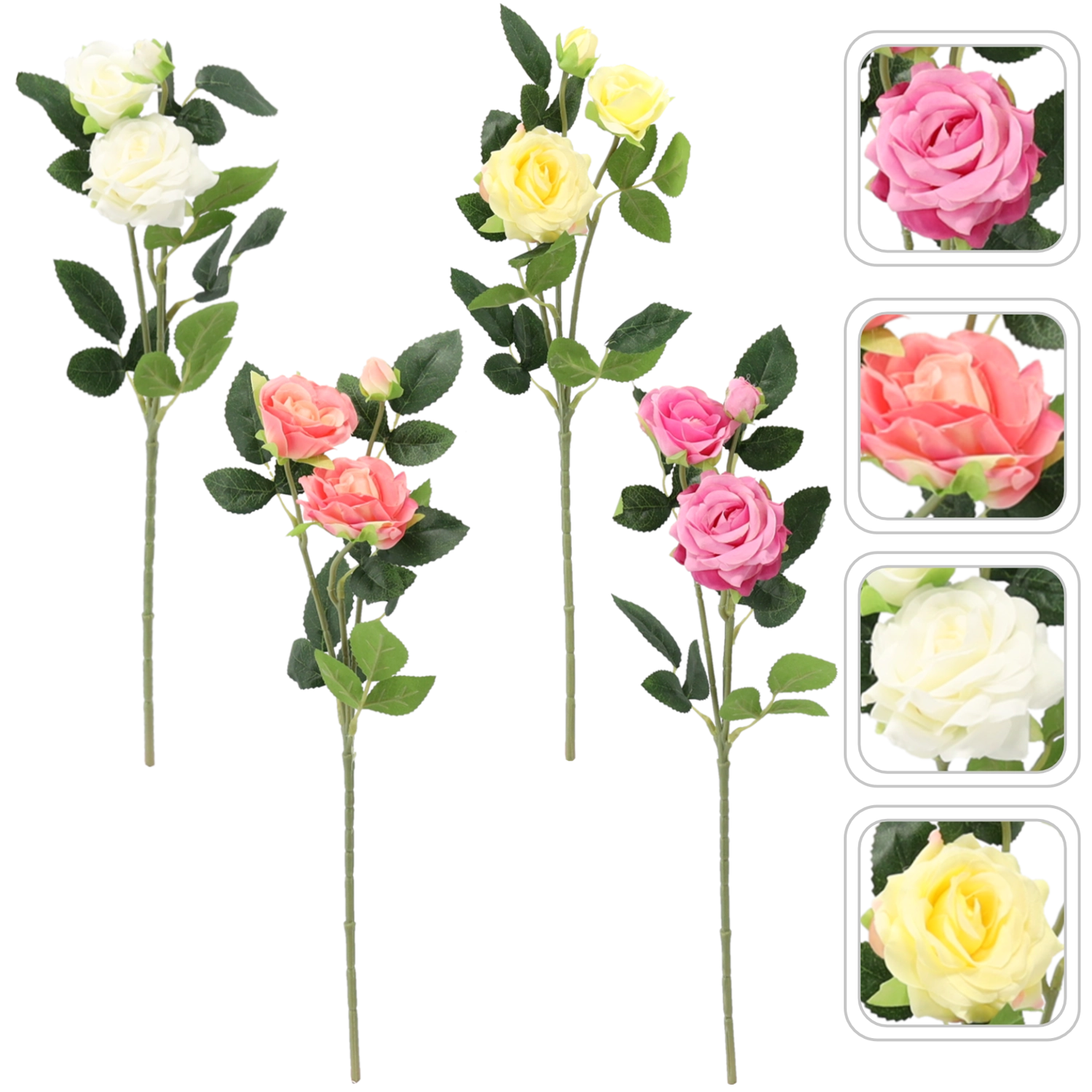Ta realistična umetna vrtnica prinaša nežno eleganco brez potrebe po vzdrževanju. S tremi podrobno izdelanimi cvetovi in trdno stebelno konstrukcijo je odlična za vaze, venčke in DIY projekte. Mešanica barv omogoča ustvarjanje svežih kombinacij za moderne in klasične interierje.