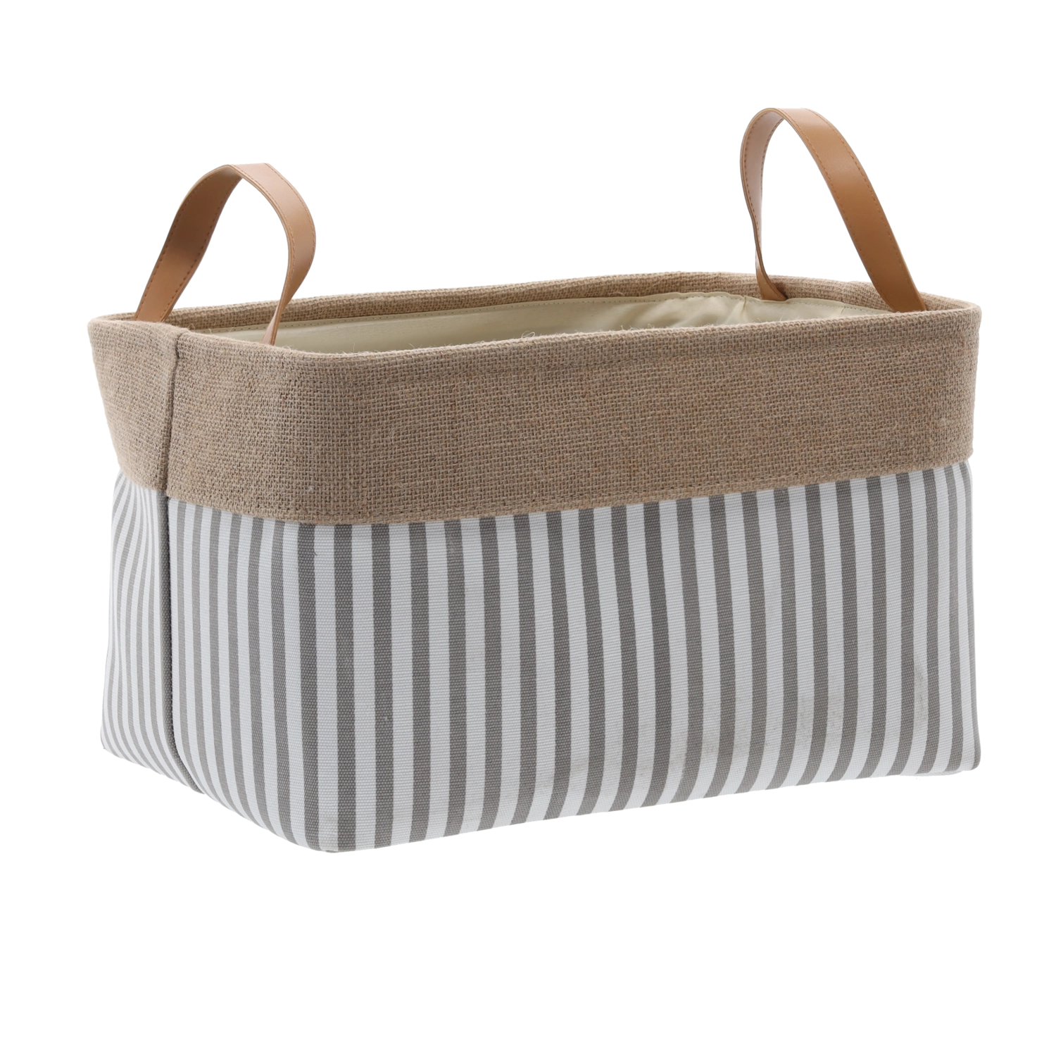 Stilska shranjevalna košara v pravokotní obliki ponuja dovolj prostora za oblačila, igrače in gospodinjske potrebščine. Zaradi črtastega dizajna se odlično poda k modernim interierjem, je zložljiva za prihranek prostora in ima praktična stranska ročaja za enostavno prenašanje.