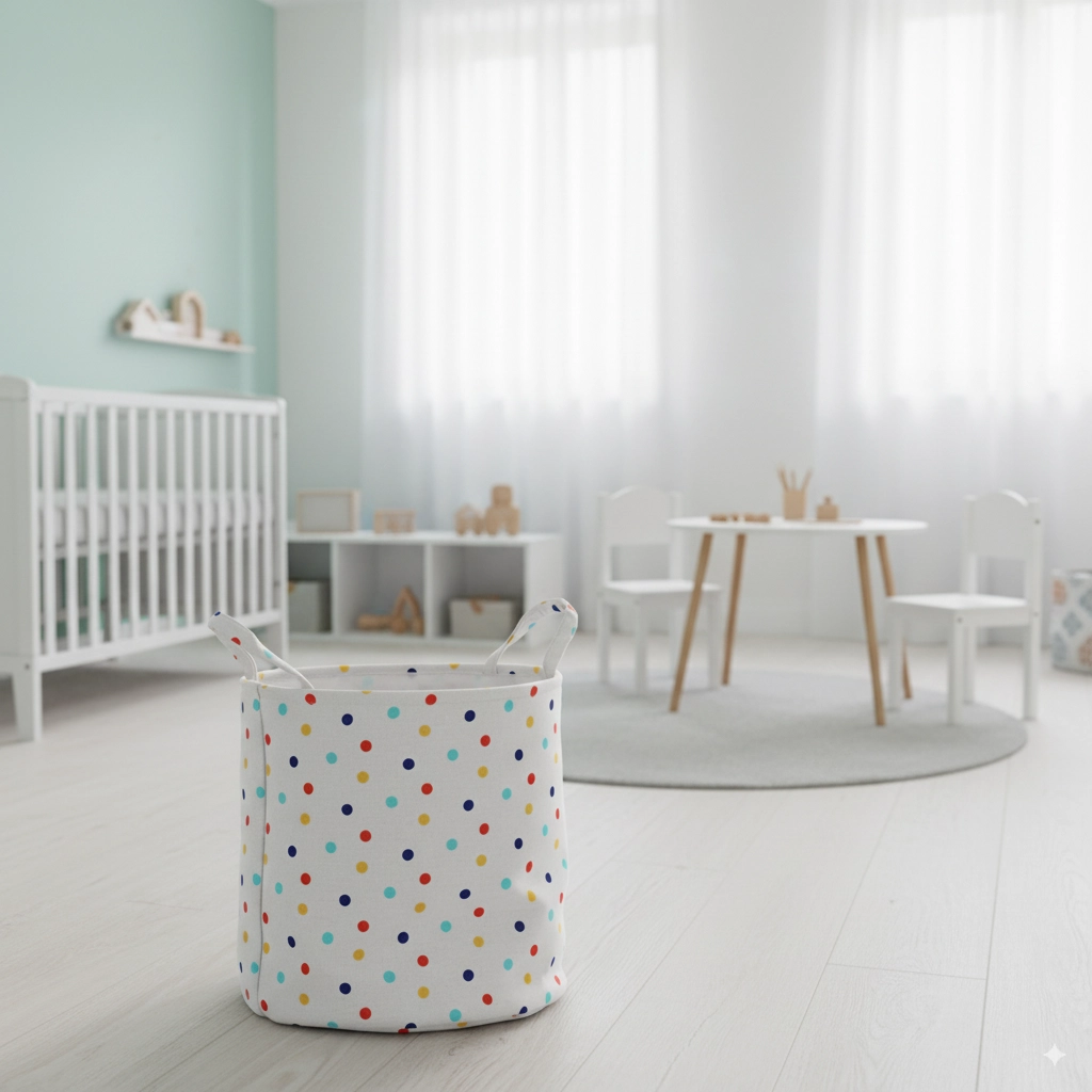 Ta okrogla tekstilna košara z barvitimi pikami je vsestranski pomočnik za kopalnico, otroško sobo in spalnico. Ponuja dovolj prostora za shranjevanje perila, igrač ali gospodinjskih drobnarij, hkrati pa prostoru doda svež, vesel videz.