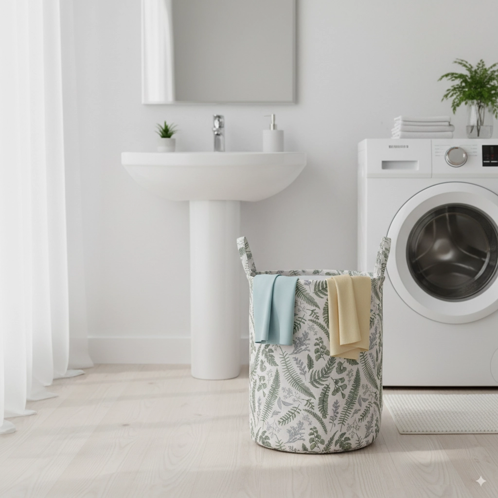 Elegantna okrogla košara z merami 38 × 50 cm in naravnim listnim motivom je idealna za shranjevanje perila, igrač in gospodinjskih potrebščin. Ponuja prostoren volumen, lahko in zložljivo zasnovo ter priročne ročaje za enostavno prenašanje. Listni dekor vnese v notranjost svežino in naraven pridih v spalnici, kopalnici ali otroški sobi.