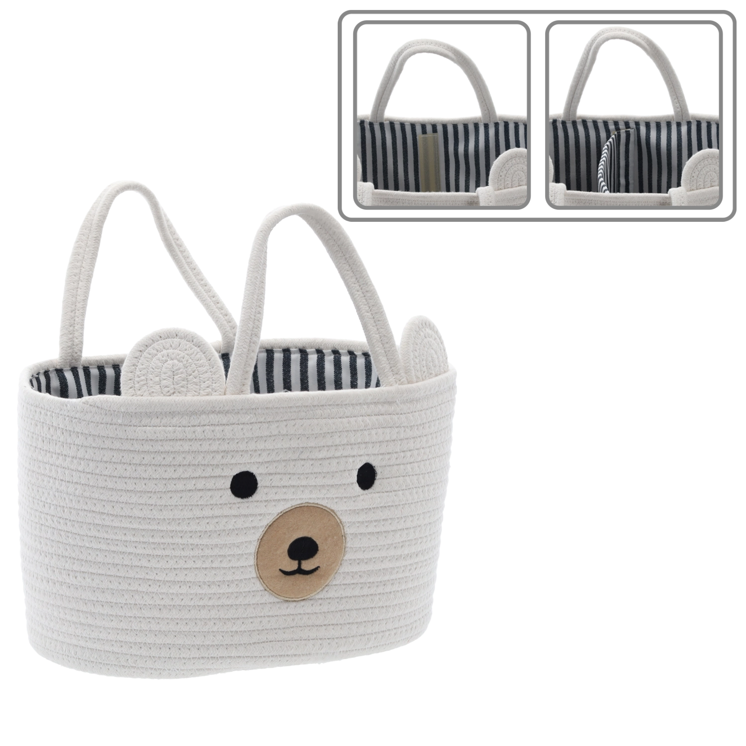 Odkrijte stilno in varno shranjevanje z belo tekstilno košaro z ušeski in nežnim živalskim obrazkom. Nevralna barva se poda v otroško sobo, spalnico in dnevni prostor ter poudari prijetno domače vzdušje. Zahvaljujoč čvrstim stranicam in lahki zasnovi zmore vsakodnevno uporabo in prenašanje.