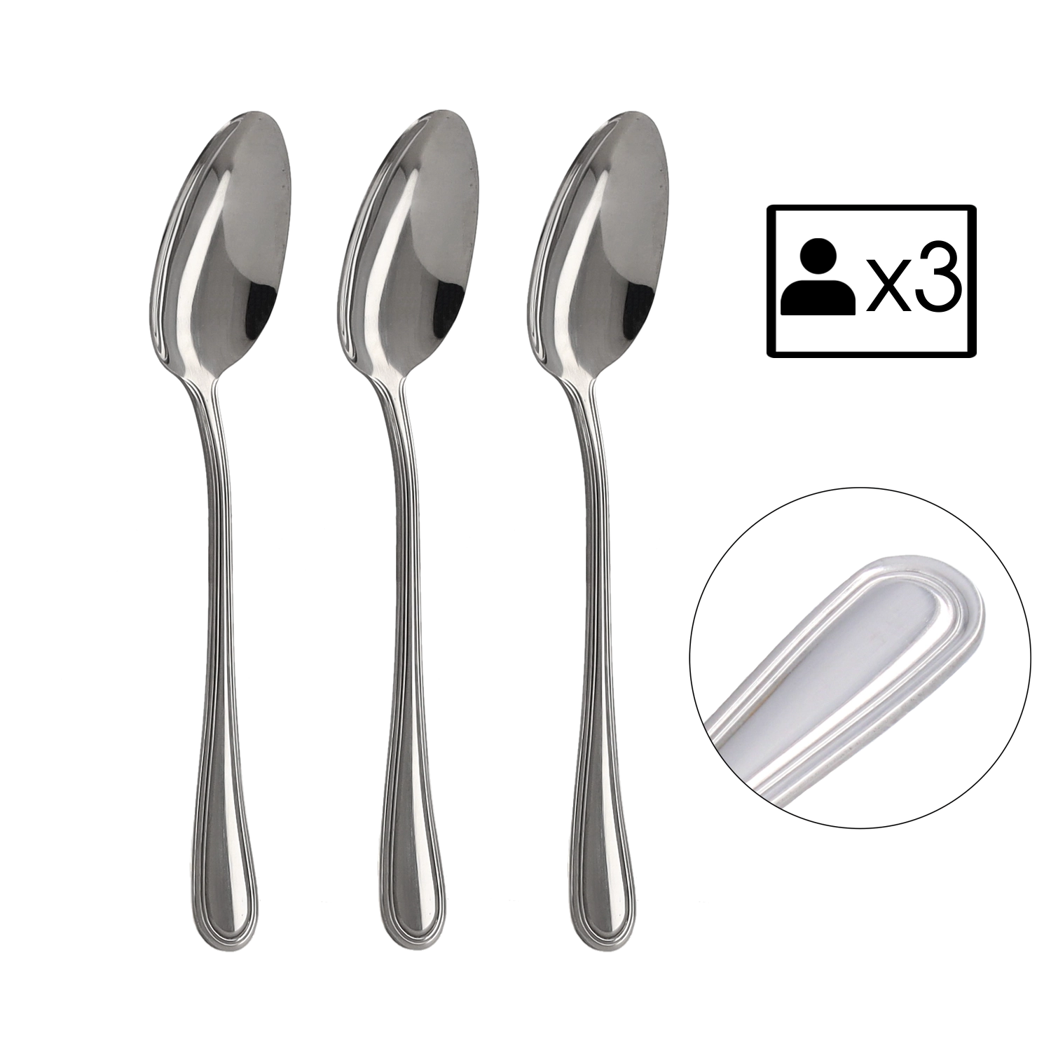 Praktično pakiranje 3 kosov je idealno za dopolnitev obstoječega kompleta ali kot hitro rešitev za manjša gospodinjstva. Žlice imajo uravnoteženo težo in prijetno ležijo v roki, kar zagotavlja udobno in stilsko postrežbo.