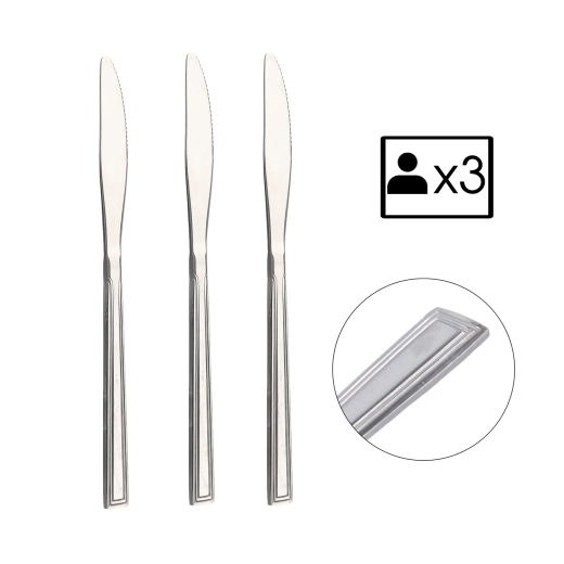 Ta set 3 kosov je idealen za vsakodnevno uporabo in za slovesne priložnosti. Univerzalna oblika noža nudi udoben oprijem in učinkovito rezanje kruha, mesa ter zelenjave.