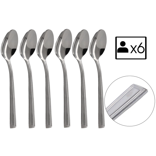 Odkrijte spoj brezčasne elegance in funkcionalnosti. Set čajnih žličk Milano je izdelan iz visokokakovostnega nerjavnega jekla, ki prenese vsakodnevno uporabo in ohrani svoj sijaj. Moderen kvadratni zaključek ročaja se odlično poda k minimalističnim in klasičnim jedilnim setom.