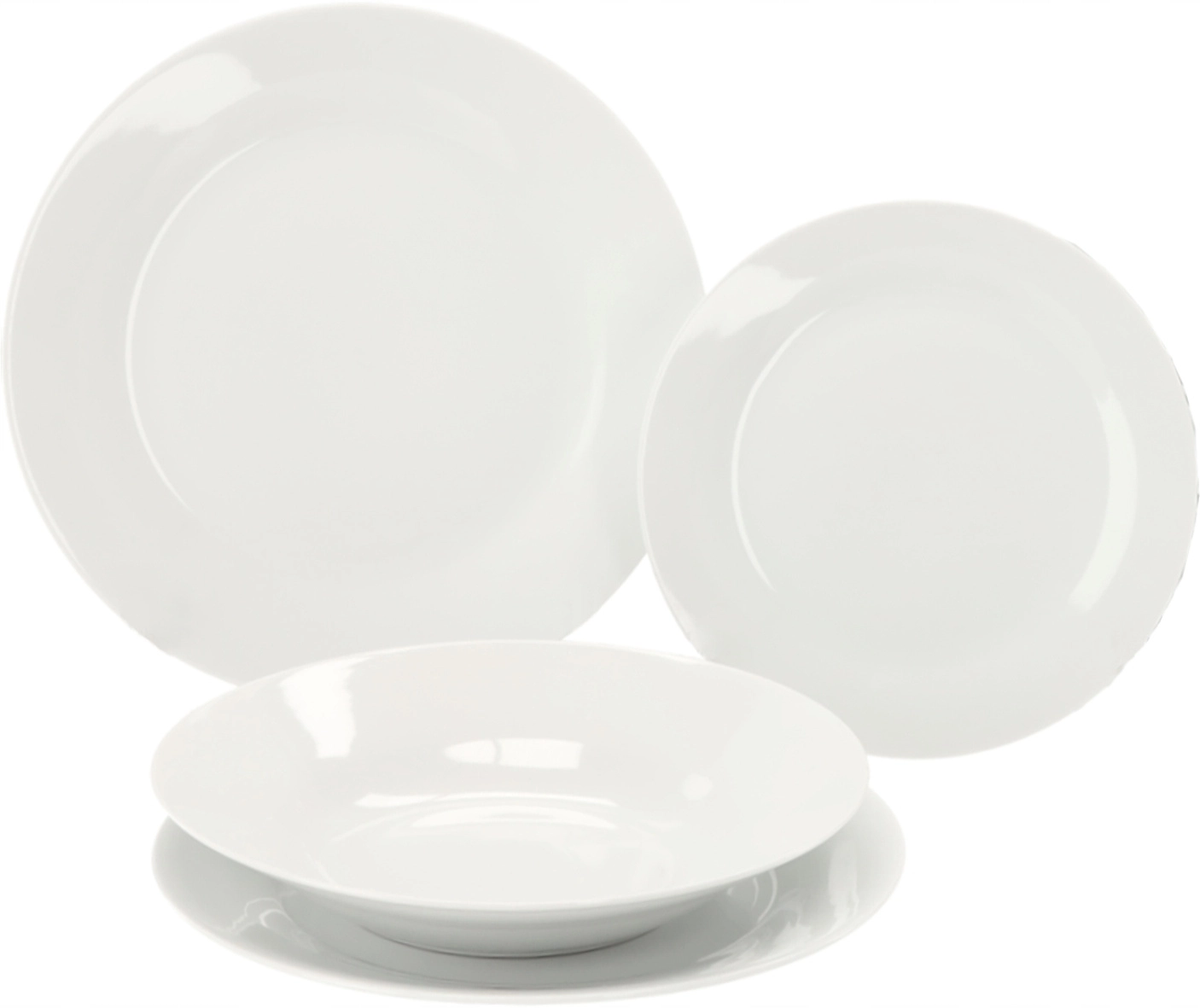 Ta okrogli jedilni set iz kakovostnega porcelana združuje estetiko in praktičnost. Preprosta bela izvedba se poda v vsak interier in se odlično ujema z dodatki. Zahvaljujoč univerzalnim meram krožnikov boste zlahka postregli juhe, glavne jedi in sladice.