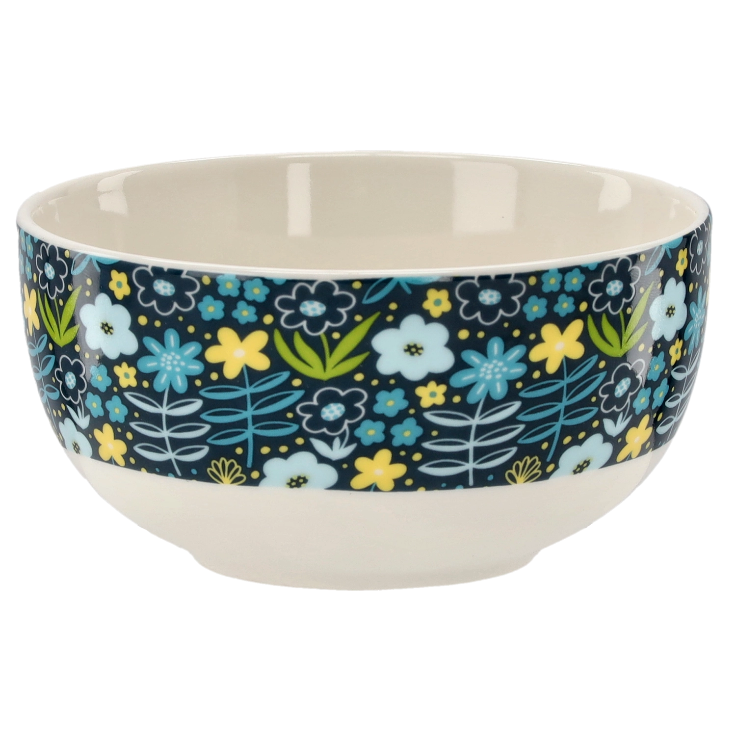 Dodajte svojemu pogrinjku šarm s porcelanasto skodelo s cvetličnim motivom. Sijajna površina, bel notranji del in širok dekorativni pas z barvnimi cvetovi delujejo sveže in brezčasno. Prostornina 550 ml je idealna za jutranje kosmiče, juhe, solate in manjše porcije prilog.