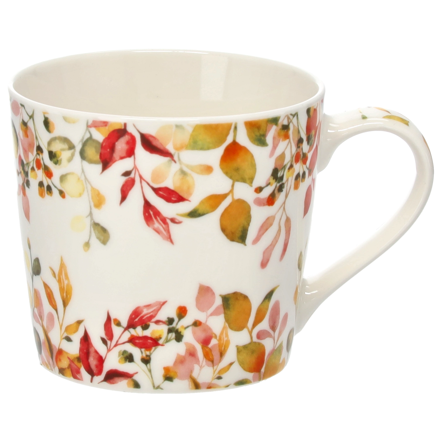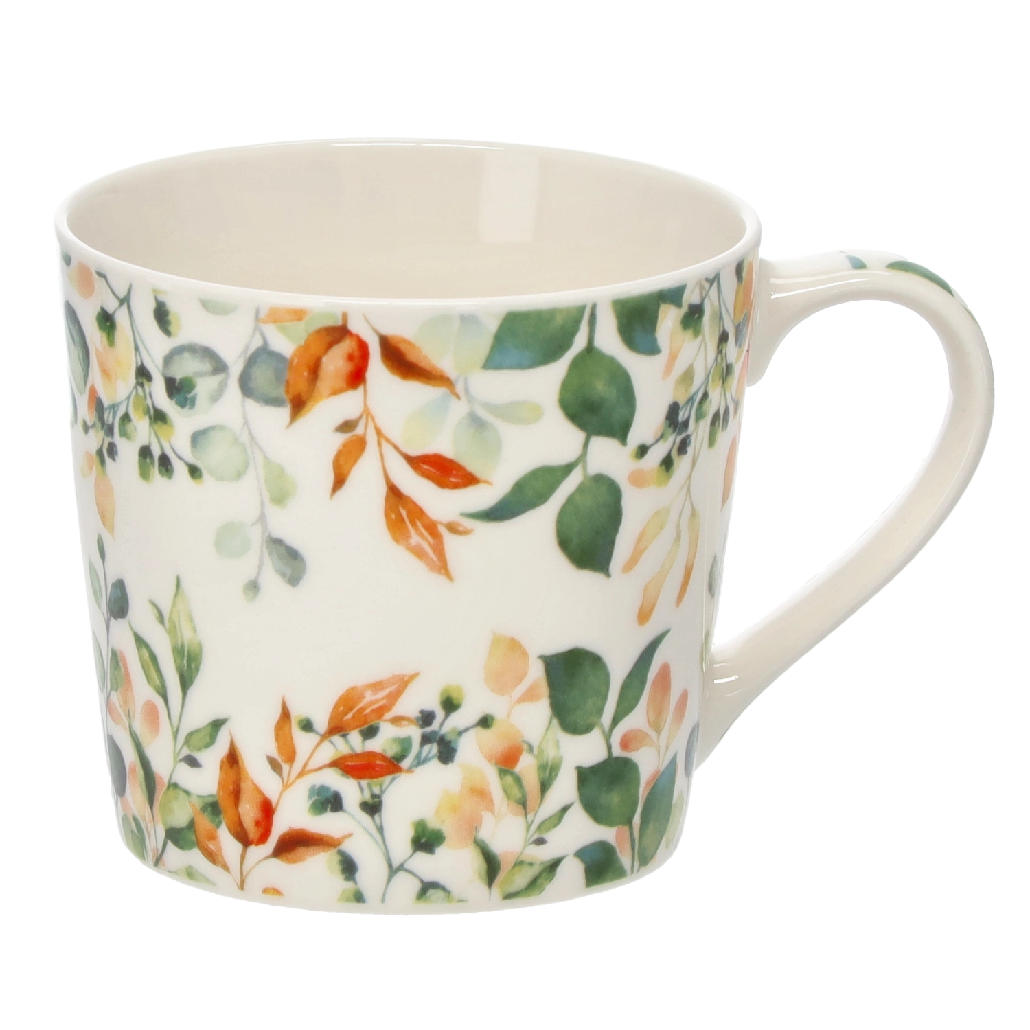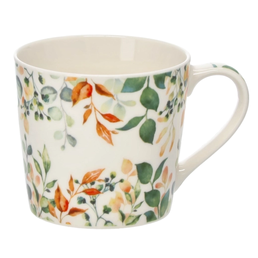 Uživajte v najljubši pijači v slogu. Ta porcelanasta skodelica z akvarelnim tiskom listov združuje eleganten dizajn s praktičnimi lastnostmi. S prostornino 400 ml je idealna za daljše trenutke sprostitve ob kavi, čaju ali zeliščnih napitkih.