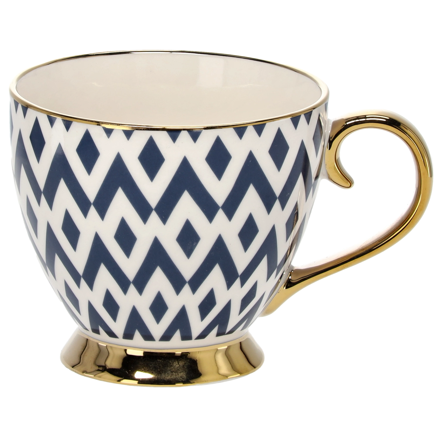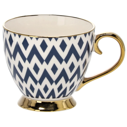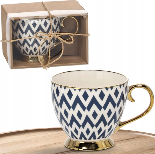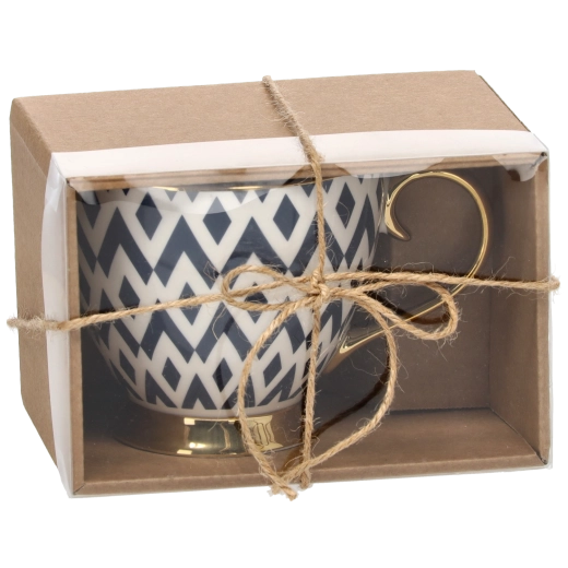 Skodelica je izdelana iz visokokakovostnega porcelana, ki je trpežen in enostaven za vzdrževanje. Ergonomski ročaj in stabilna nogica zagotavljata udobno uporabo in varno postavitev na mizi. Raznoliki geometrijski vzorci izdelku dajejo edinstven značaj in ga naredijo tudi odličen predlog za darilo.