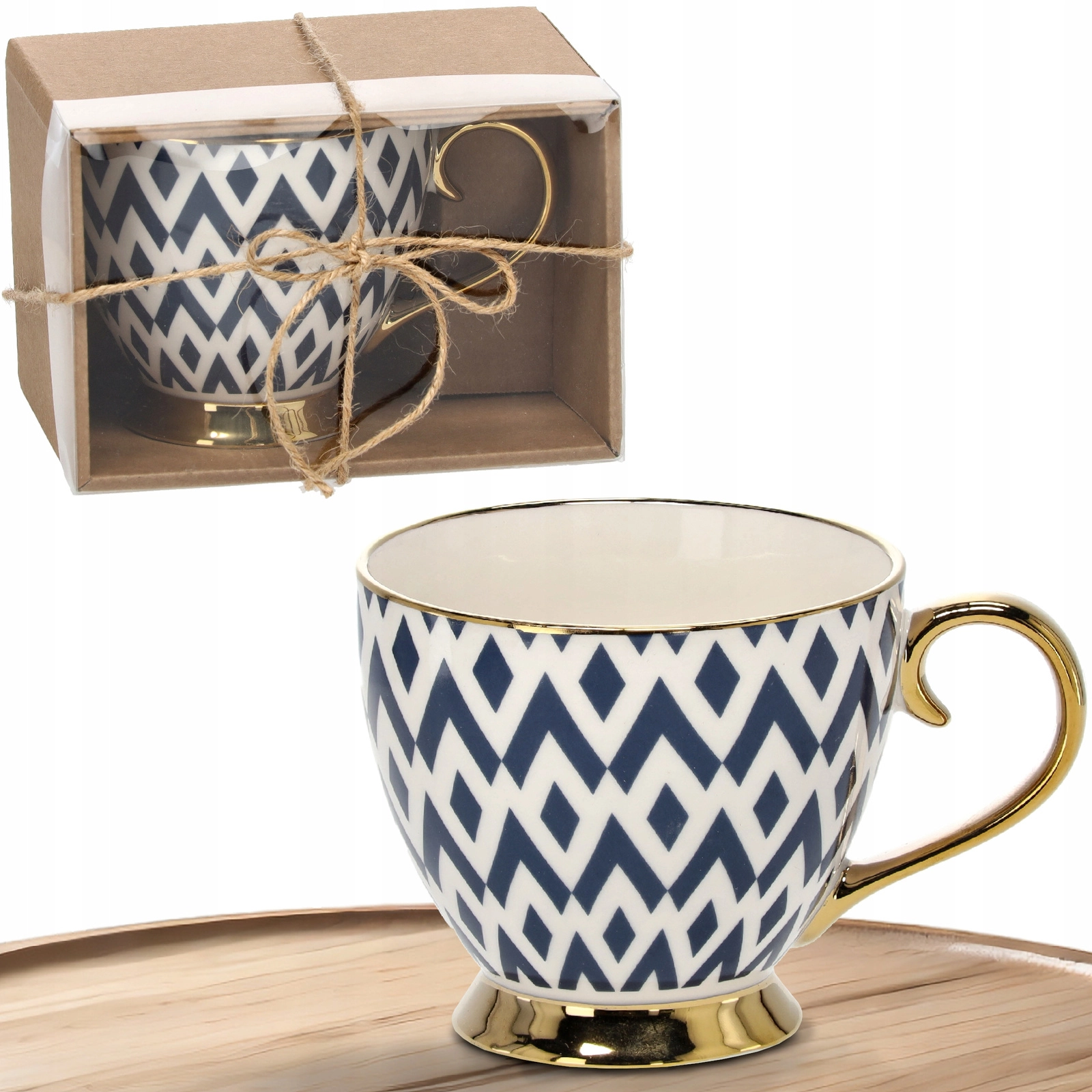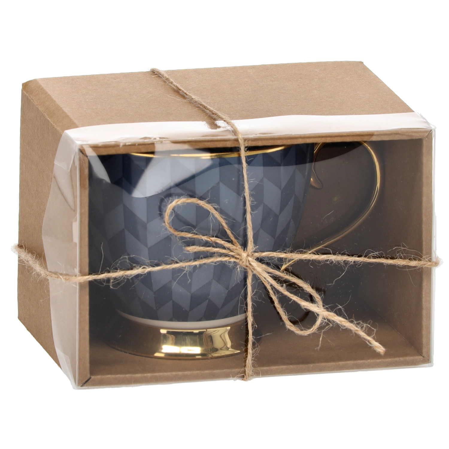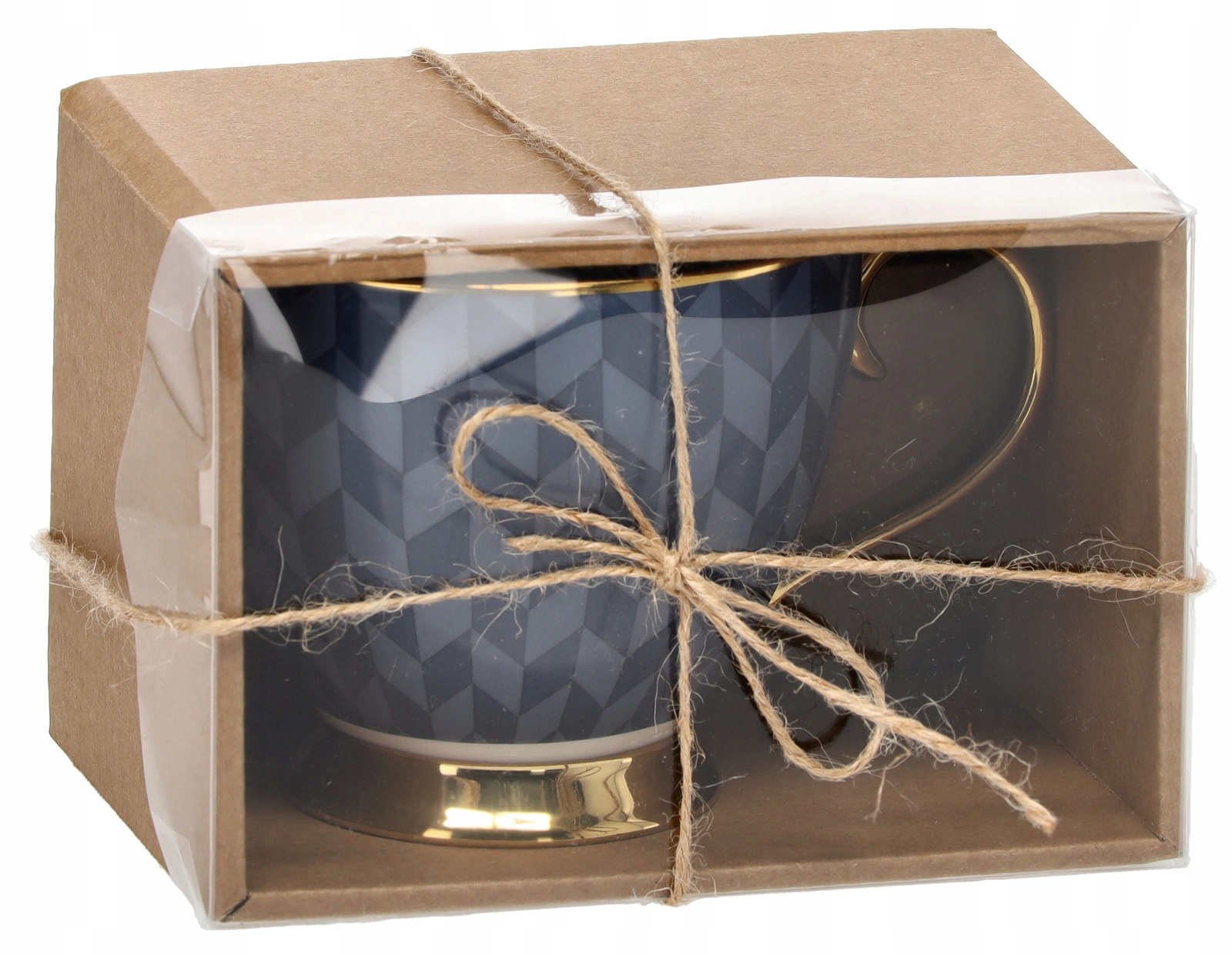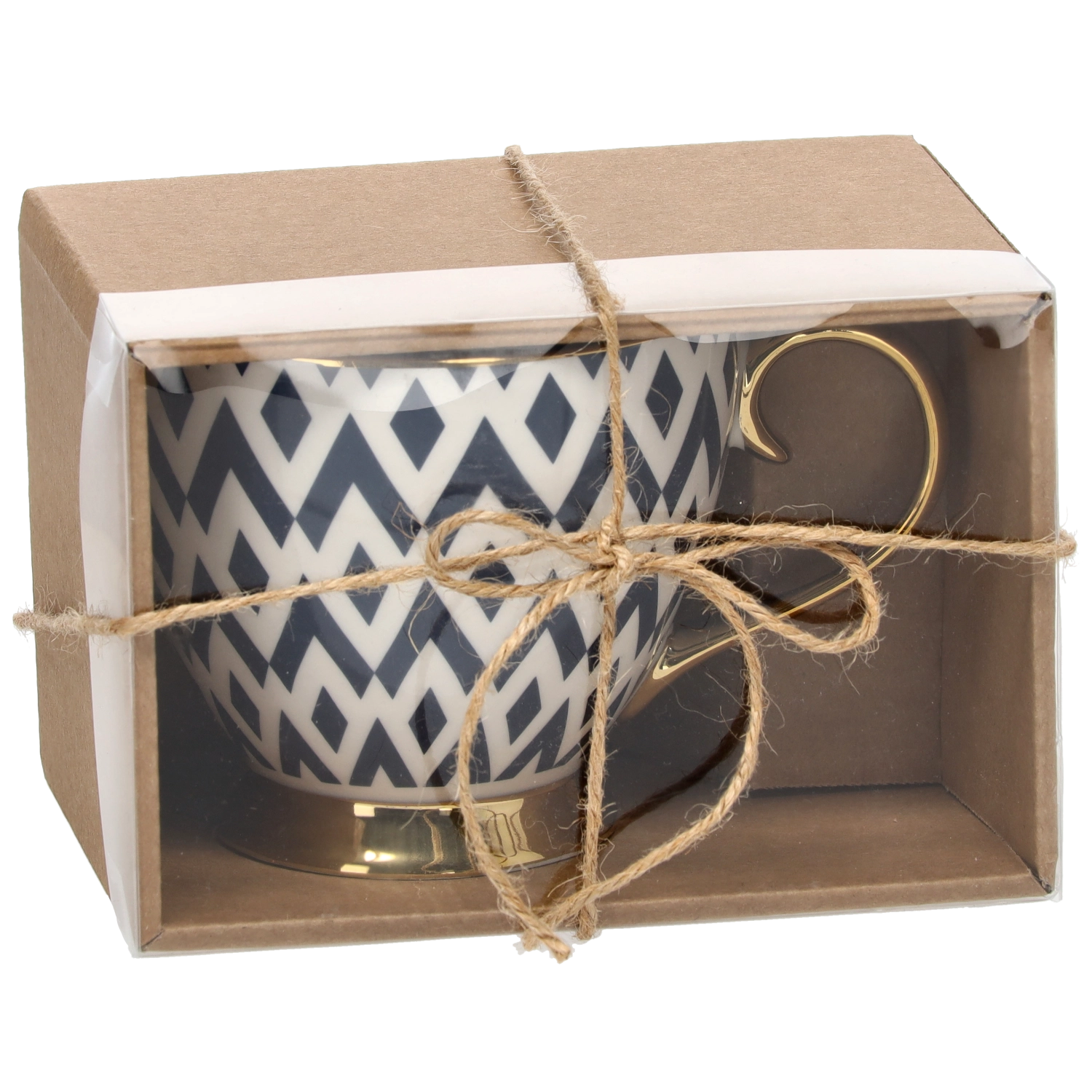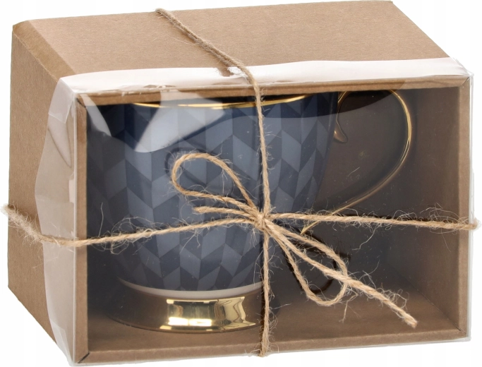 Skodelica je shranjena v estetski škatlici z okencem in vrvico – idealna kot eleganten dar brez dodatnih priprav.