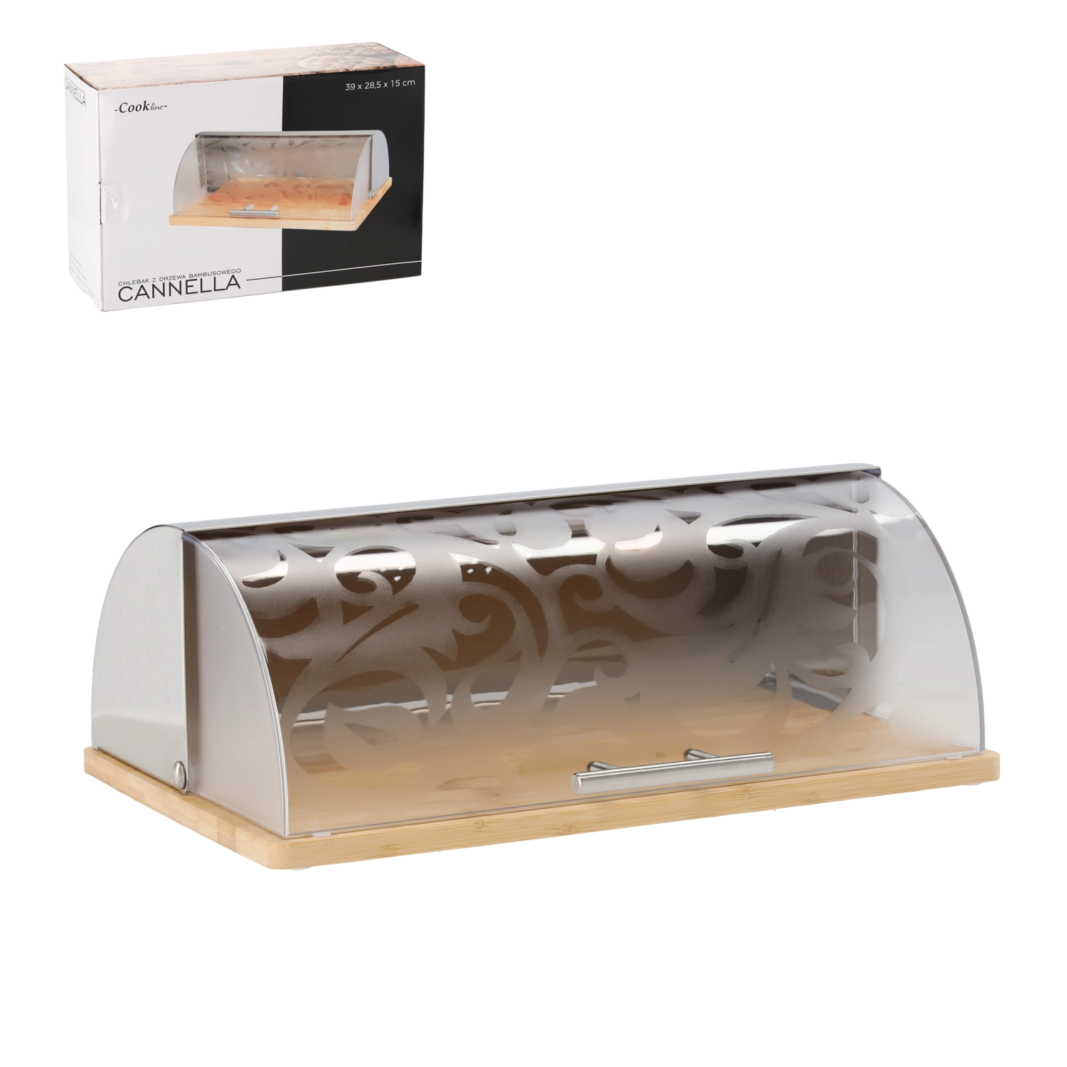Zaboj za kruh CANELLA je praktična in oblikovno dovršena rešitev za vsakodnevno shranjevanje peciva. Naravni bambus se lepo ujema z modernim matirano prosojnim akrilnim pokrovom z dekorativnim motivom, ki varuje vsebino in hkrati omogoča pogled v notranjost. Optimizirano prezračevanje preprečuje izsuševanje in vlaženje peciva, zato boste dlje uživali v hrustljavi skorji.
