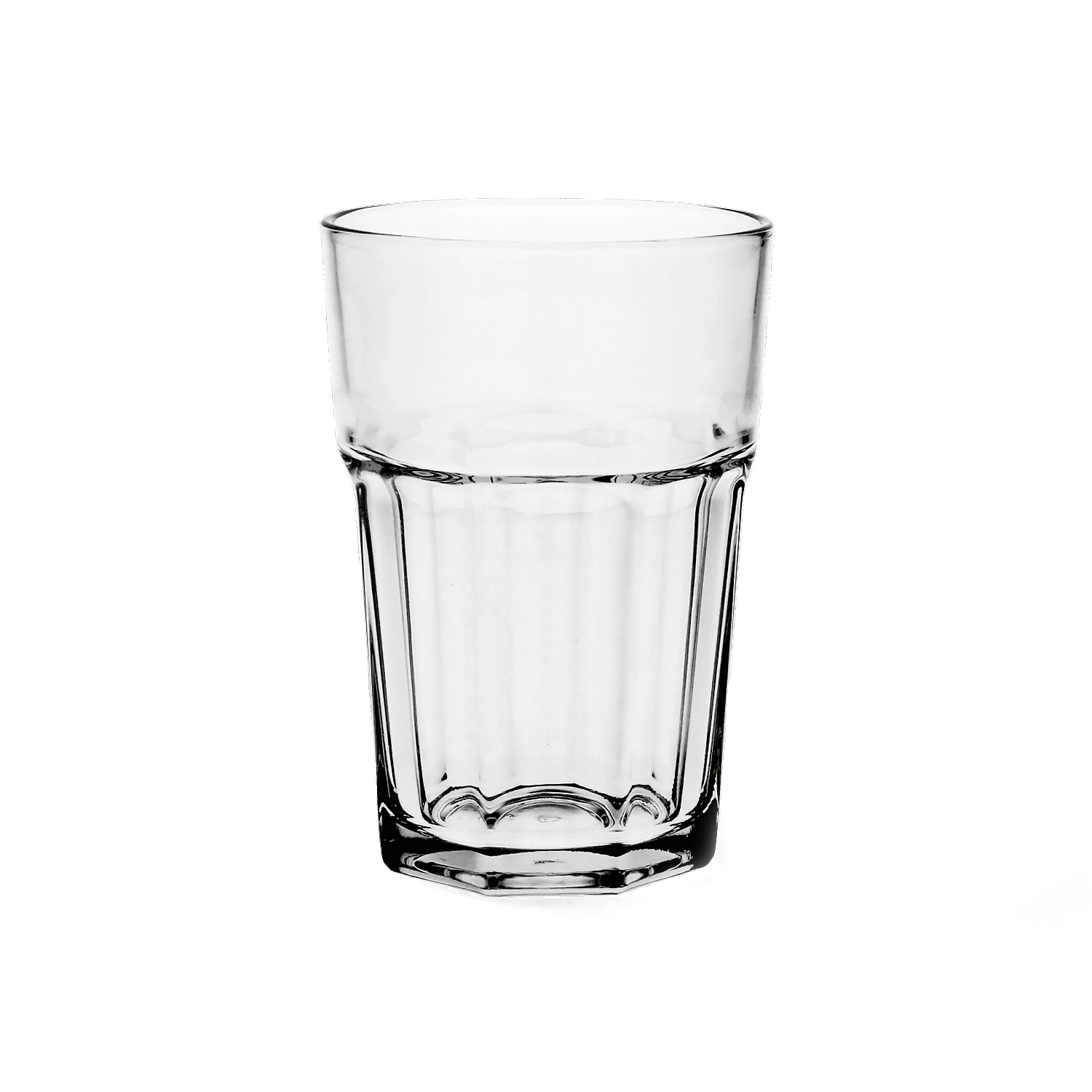 Odkrijte univerzalne kozarce Aras s prostornino 365 ml, ki izstopajo s čistimi linijami in trdno konstrukcijo. Večfazetne stene izboljšajo oprijem in vizualno poudarijo postrežene pijače – od osvežilnih limonad in sokov do koktajlov in long drinkov.