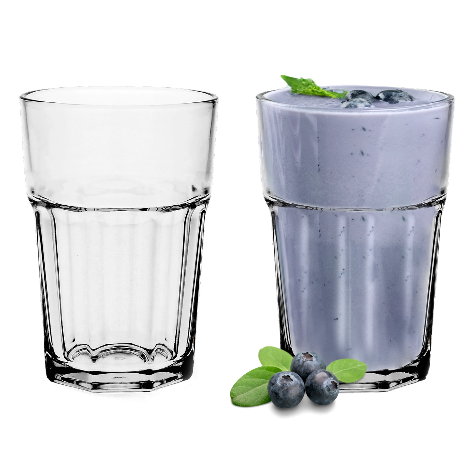 Kozarci s prostornino 365 ml so odlični za mojito, long drinke in brezalkoholne limonade – prostorni, praktični in vizualno prepričljivi.