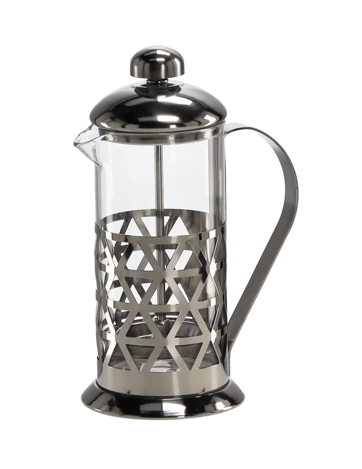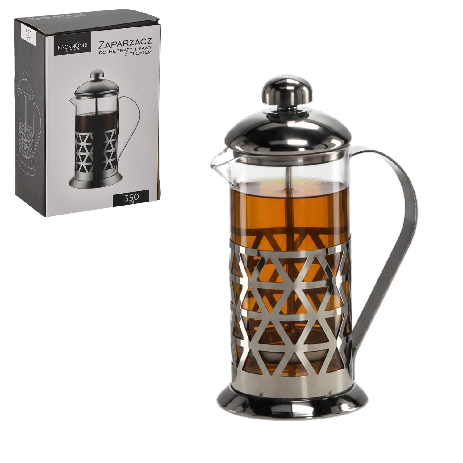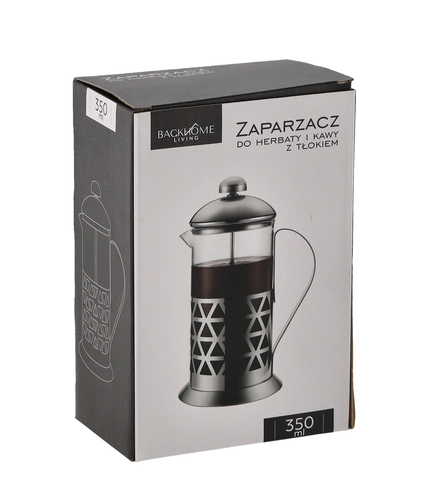 Eleganten french press s prostornino 350 ml za hitro pripravo okusne kave in čaja. Zahvaljujoč preprostemu batnemu mehanizmu zlahka ločite usedlino, kar zagotovi čist in poln okus. Odporno borosilikatno steklo in nerjavno jeklo zagotavljata dolgo življenjsko dobo, medtem ko plastičen pokrov in ročaj ponujata udobno in varno uporabo. Odlično za 1–2 porciji doma ali v pisarni.