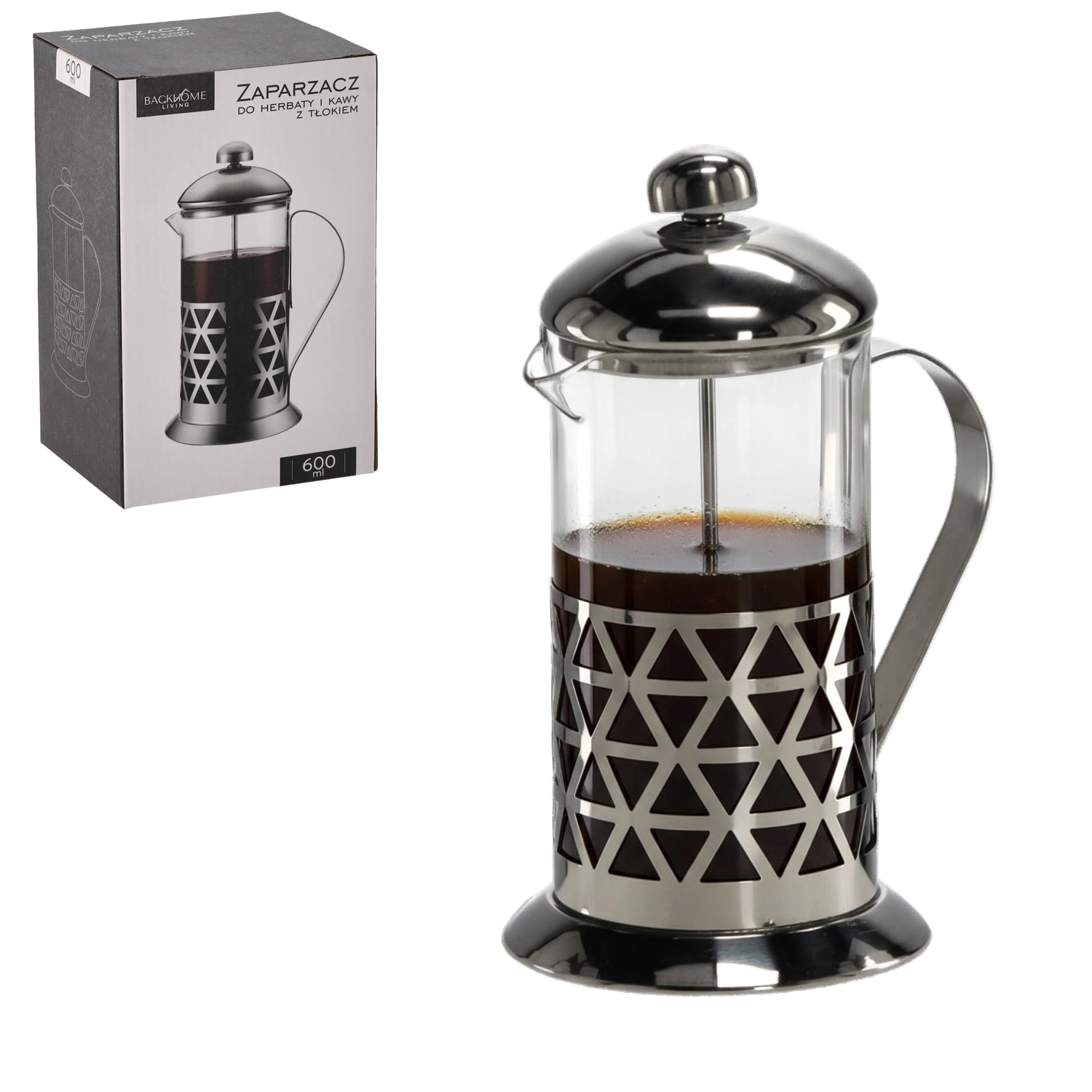 Eleganten french press s prostornino 600 ml za pripravo kave, čaja in zeliščnih prelivov. Kombinacija odpornega borosilikatnega stekla in nerjavečega jekla zagotavlja dolgo življenjsko dobo in čist okus. Zahvaljujoč ergonomskemu ročaju, praktičnemu izlivalnemu kljunčku in hitremu batnemu mehanizmu boste napitek pripravili brez polivanja in čakanja. Odličen tudi za penjenje mleka in pripravo hladne kave s peno.