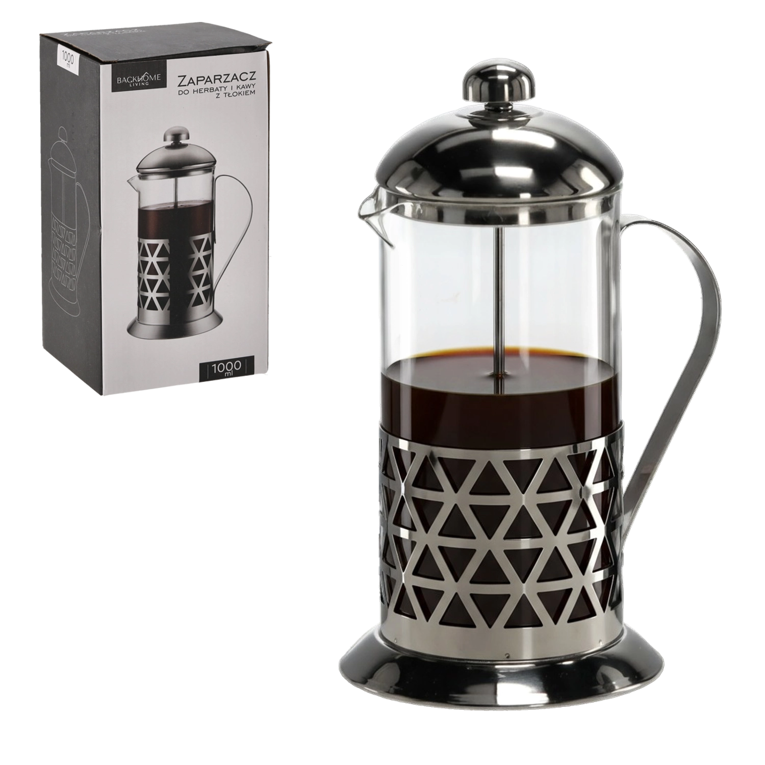 Eleganten ročni french press s prostornino 1000 ml za preprosto pripravo priljubljene kave in čaja. Kombinacija borosilikatnega stekla in nerjavnega jekla zagotavlja dolgo življenjsko dobo, odpornost na visoke temperature ter čisto, aromatično ekstrakcijo zahvaljujoč batni enoti z drobnim sitom. Ergonomski ročaj in natančno oblikovan izlivalni kljun omogočata varno nalivanje brez polivanja.