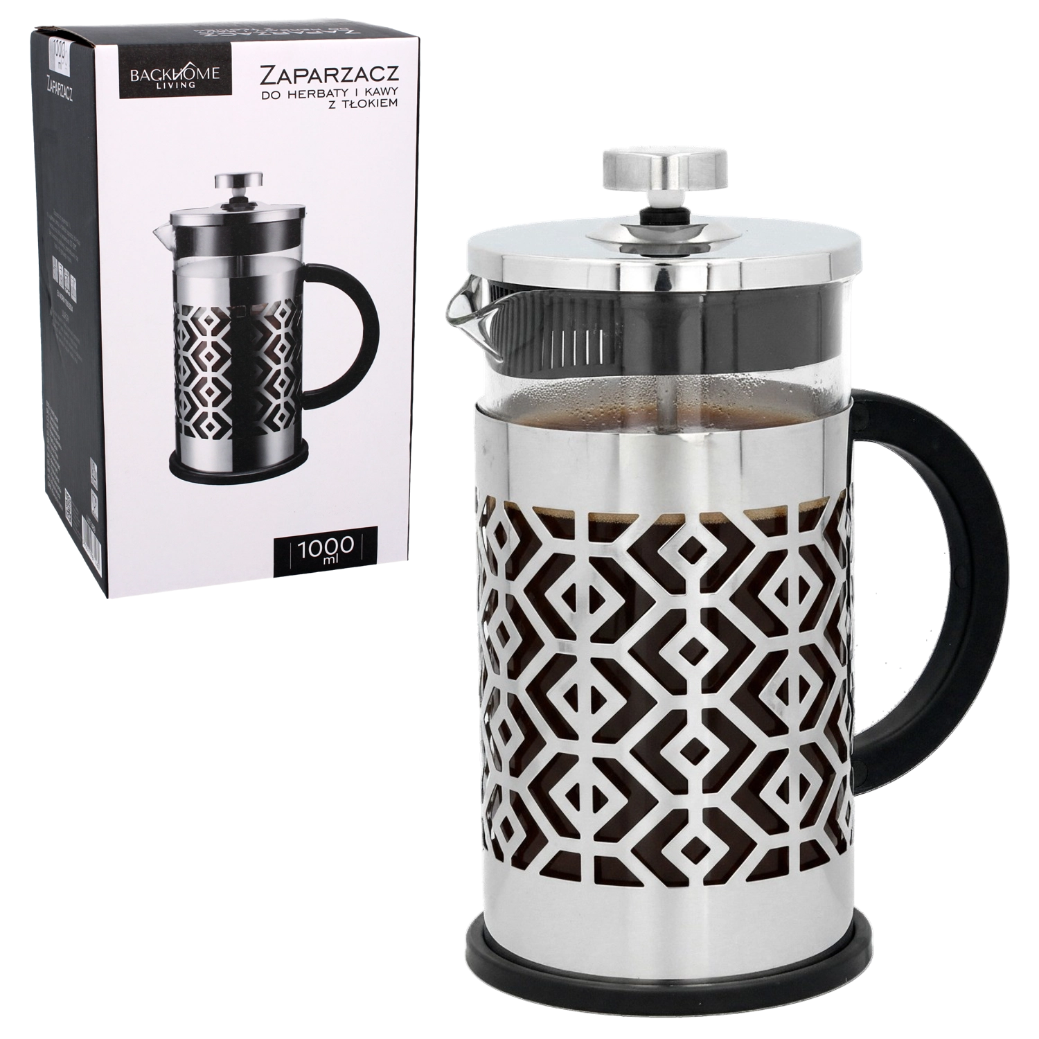 Praktična francoska preša s prostornino 1000 ml za hitro pripravo čaja, kave in zeliščnih poparkov. Po zaslugi batnega mehanizma zlahka ločite usedlino in dobite čisto, aromatično pijačo. Eleganten dizajn z odpornim borosilikatnim steklom in elementi iz nerjavnega jekla se prilega vsaki kuhinji in pripravi do 8 skodelic naenkrat.
