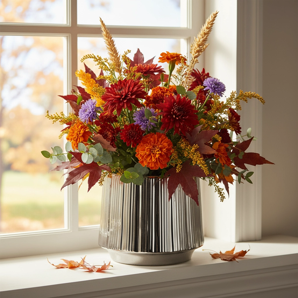 Stilski srebrn okrasni lonec z merami 44 × 44 × 40 cm je idealen za večje sobne rastline in dekorativne kompozicije. Njegova črtasta tekstura ustvarja učinkovite odseve in se zlahka kombinira z različnimi tipi interierjev.