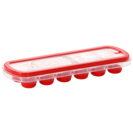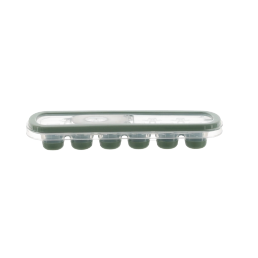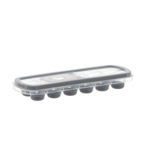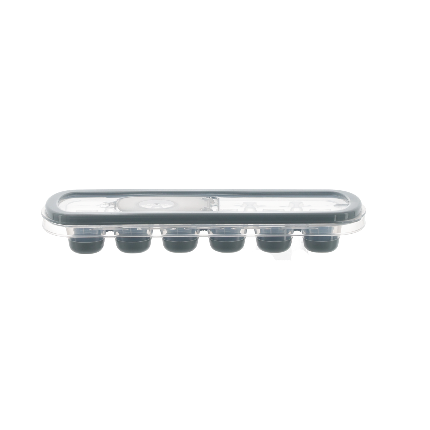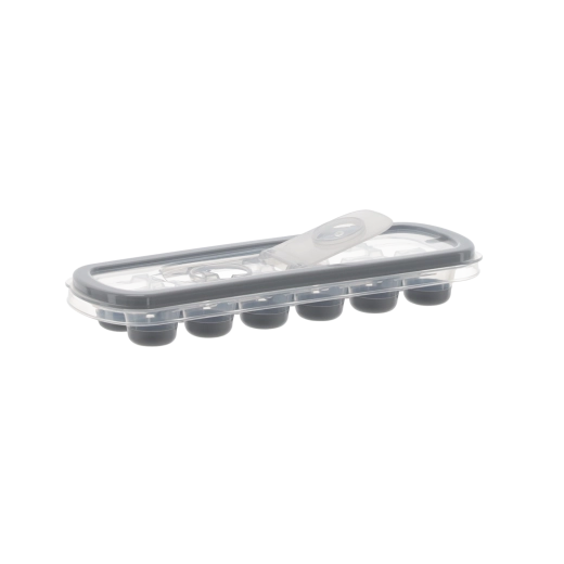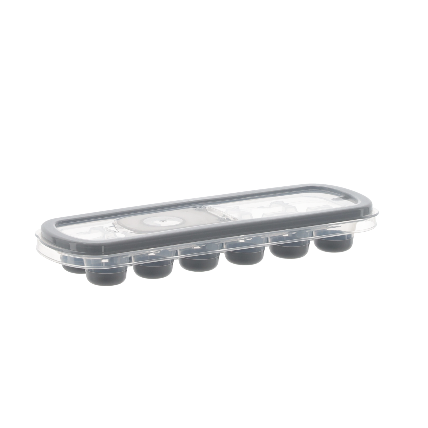Praktični model za led s silikonskim dnom za enostavno sproščanje do 12 kock hkrati. Priložen tesnilni pokrov z odprtino omogoča udobno polnjenje brez razlivanja in ščiti pred vpijanjem vonjav iz zamrzovalnika. Izdelan iz varnih materialov za stik z živili, primeren za pomivalni stroj in idealen tudi za zamrzovanje sadnih sokov, zelišč ali pralinejev.