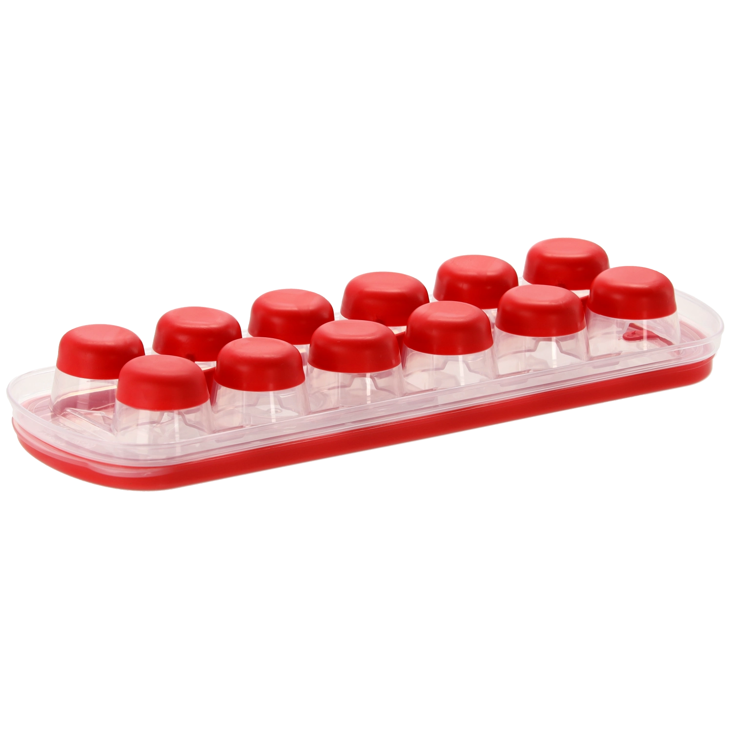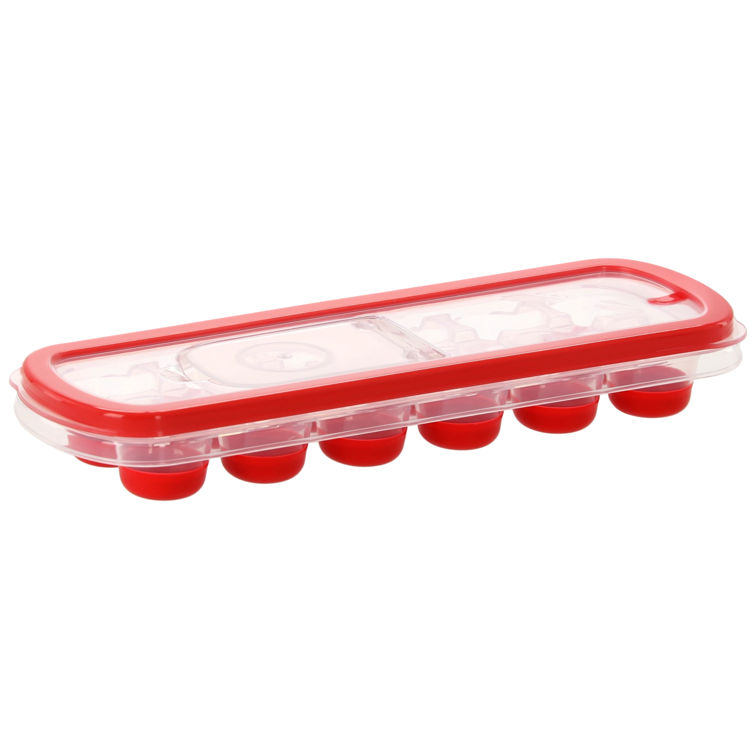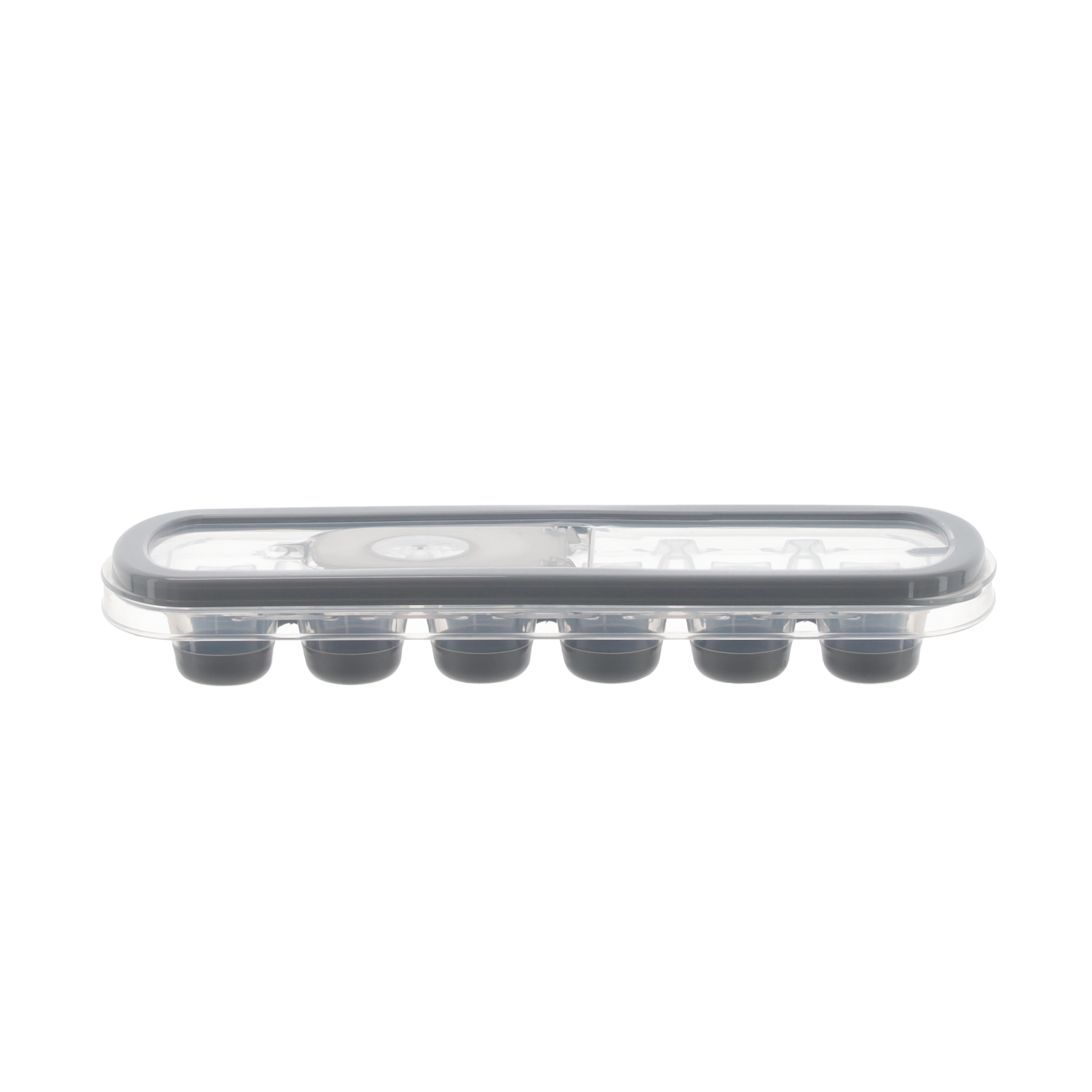 Praktični model za led s silikonskim dnom za enostavno sproščanje do 12 kock hkrati. Priložen tesnilni pokrov z odprtino omogoča udobno polnjenje brez razlivanja in ščiti pred vpijanjem vonjav iz zamrzovalnika. Izdelan iz varnih materialov za stik z živili, primeren za pomivalni stroj in idealen tudi za zamrzovanje sadnih sokov, zelišč ali pralinejev.