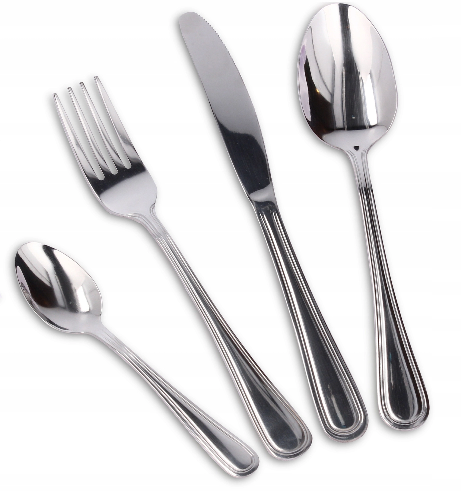 - 6× jedilni nož, 6× jedilna vilica, 6× jušna žlica, 6× čajna žlička