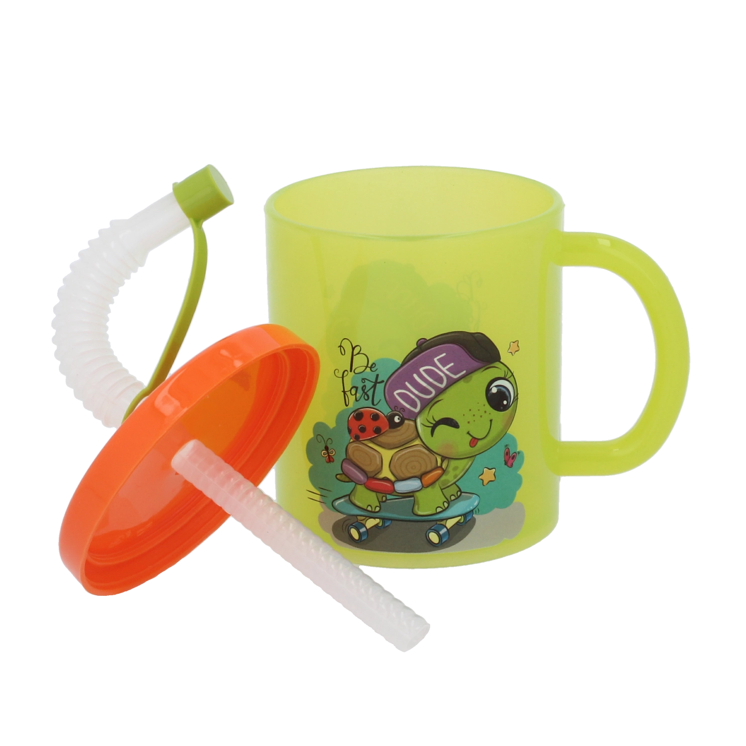 Praktična plastična skodelica s slamico s prostornino 210 ml je zasnovana za udobno in čisto pitje. Zaradi lahke in trpežne zasnove je odlična za dom, otroško jedilnico in nahrbtnik na izletih. Varen material brez škodljivih snovi je prijazen do otrok in živil.