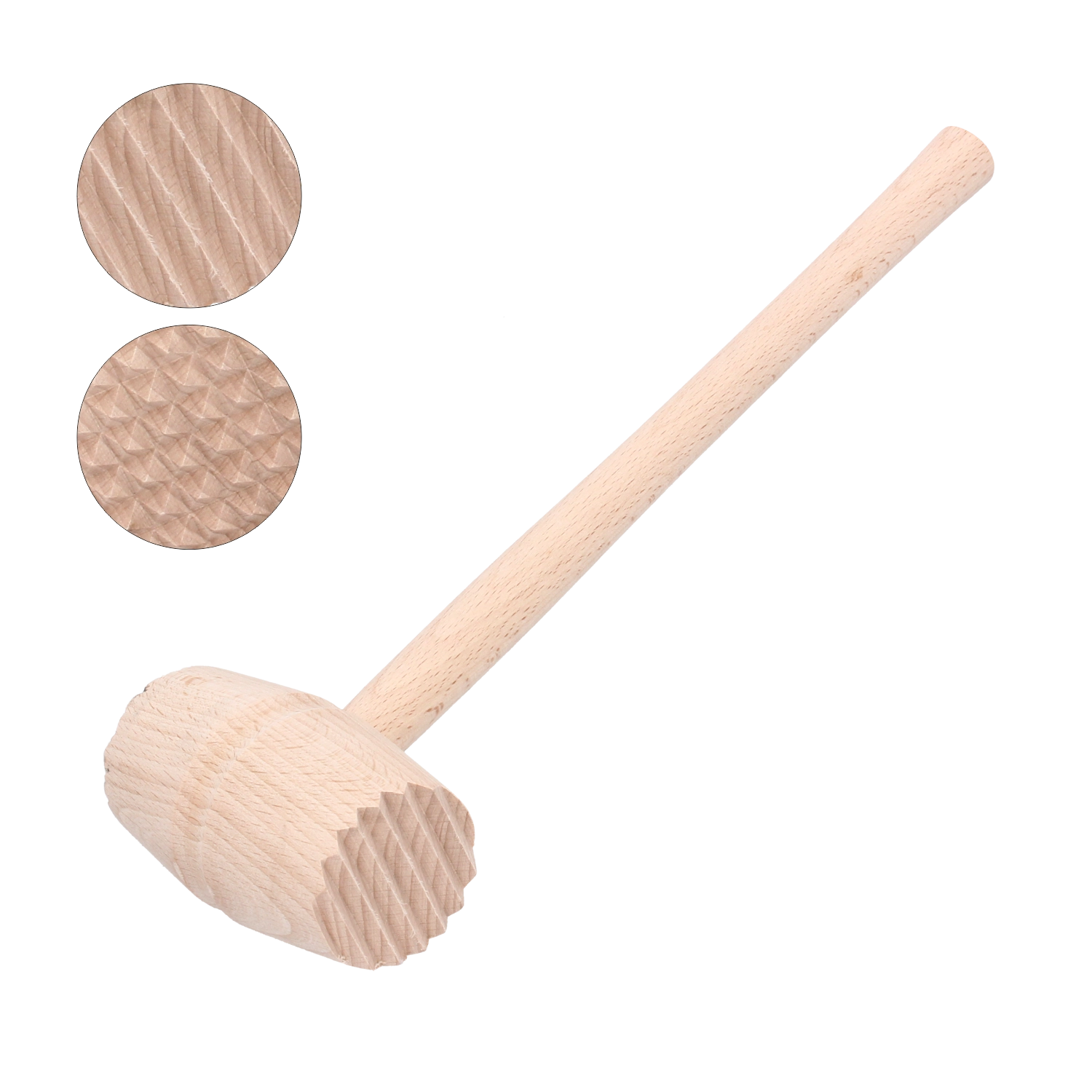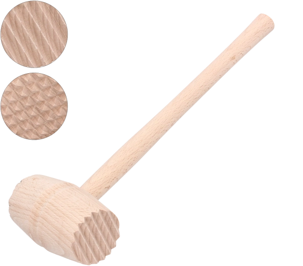 To leseno kladivo za meso je zanesljiv pomočnik pri pripravi zrezkov, zvitkov in drugih mesnih jedi. Izdelano je iz odpornega bukovega lesa, ki je obdelan z zaščitnim lakom za daljšo življenjsko dobo in lažje čiščenje. Dva nerjavna nastavka premera 4,5 cm omogočata enakomerno in hitro mehčanje brez poškodovanja strukture mesa.