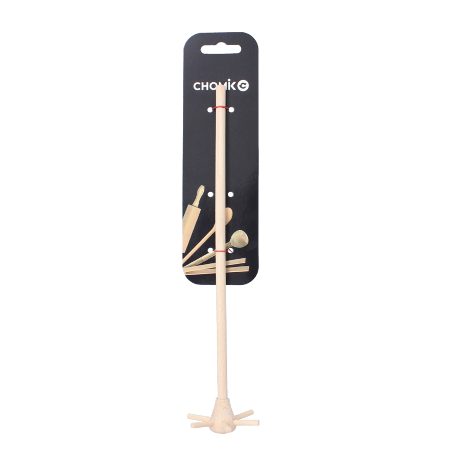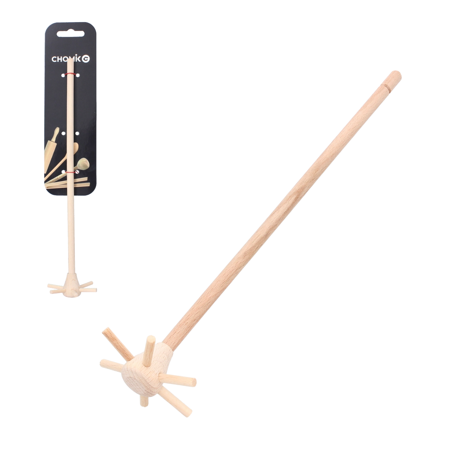 Praktičen kuhinjski pripomoček za vsakodnevno kuhanje – velika lesena metlica dolžine 27 cm je idealna za mešanje, stepanje in emulgiranje omak, juh in test. Naravni leseni material je nežen do posode in prijeten za držanje.