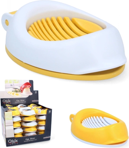 Praktičen rezalnik za jajca znamke Luks z nerjavnimi žičkami za hitro in enakomerno rezanje kuhanih jajc na rezine. Trpežna izdelava iz plastike brez BPA zagotavlja varen stik z živili, enostavno vzdrževanje v pomivalnem stroju ali pod tekočo vodo ter kompaktne mere za priročno shranjevanje.