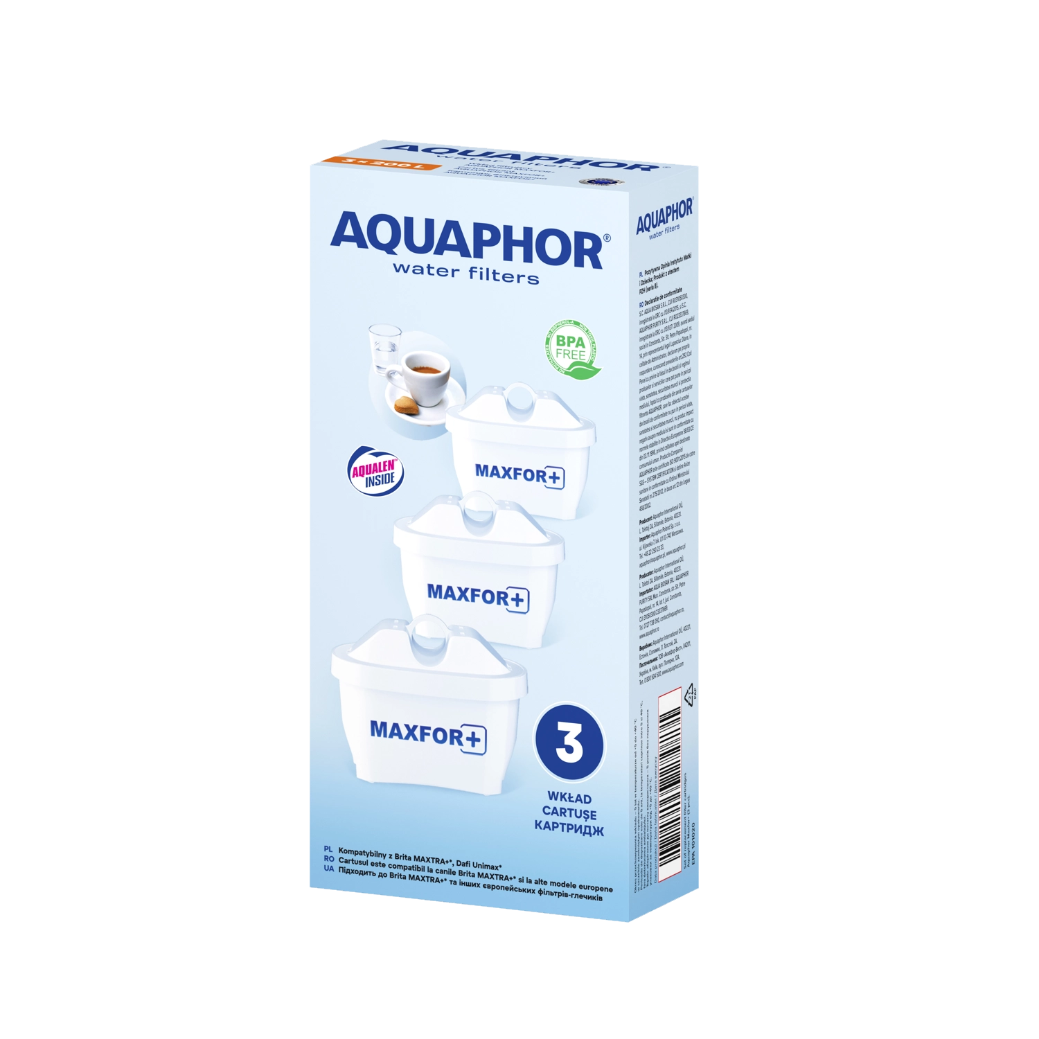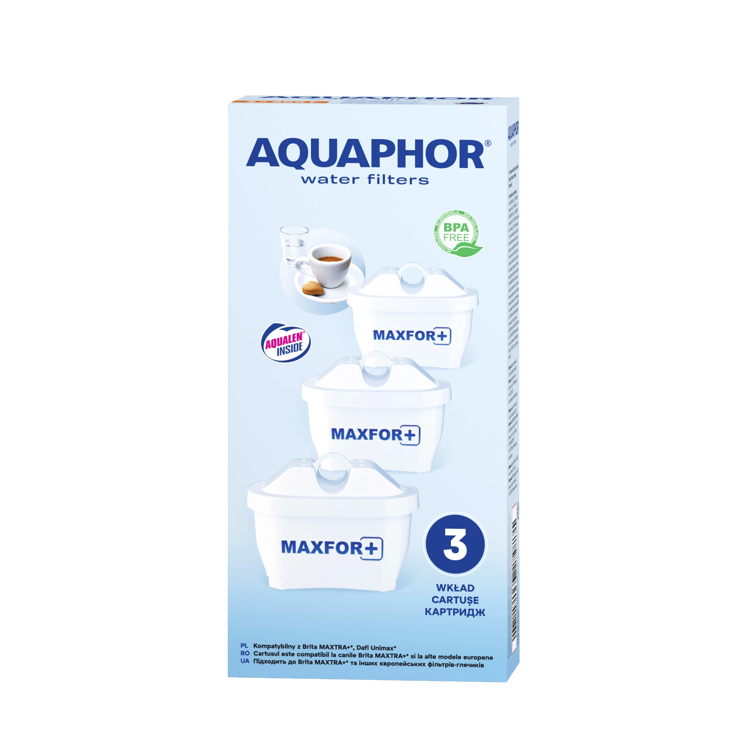 Uživajte v čisti in okusni vodi vsak dan s kompletom treh filtrirnih vložkov AQUAPHOR MAXFOR B25. Vložki učinkovito zmanjšujejo klor, pesticide, herbicide, težke kovine, fenole in naftne snovi, hkrati pa vodo obogatijo z magnezijem za boljši okus in prispevek k zdravju. En vložek prefiltrira do 200 litrov vode in je združljiv s številnimi vrči AQUAPHOR ter drugimi blagovnimi znamkami.