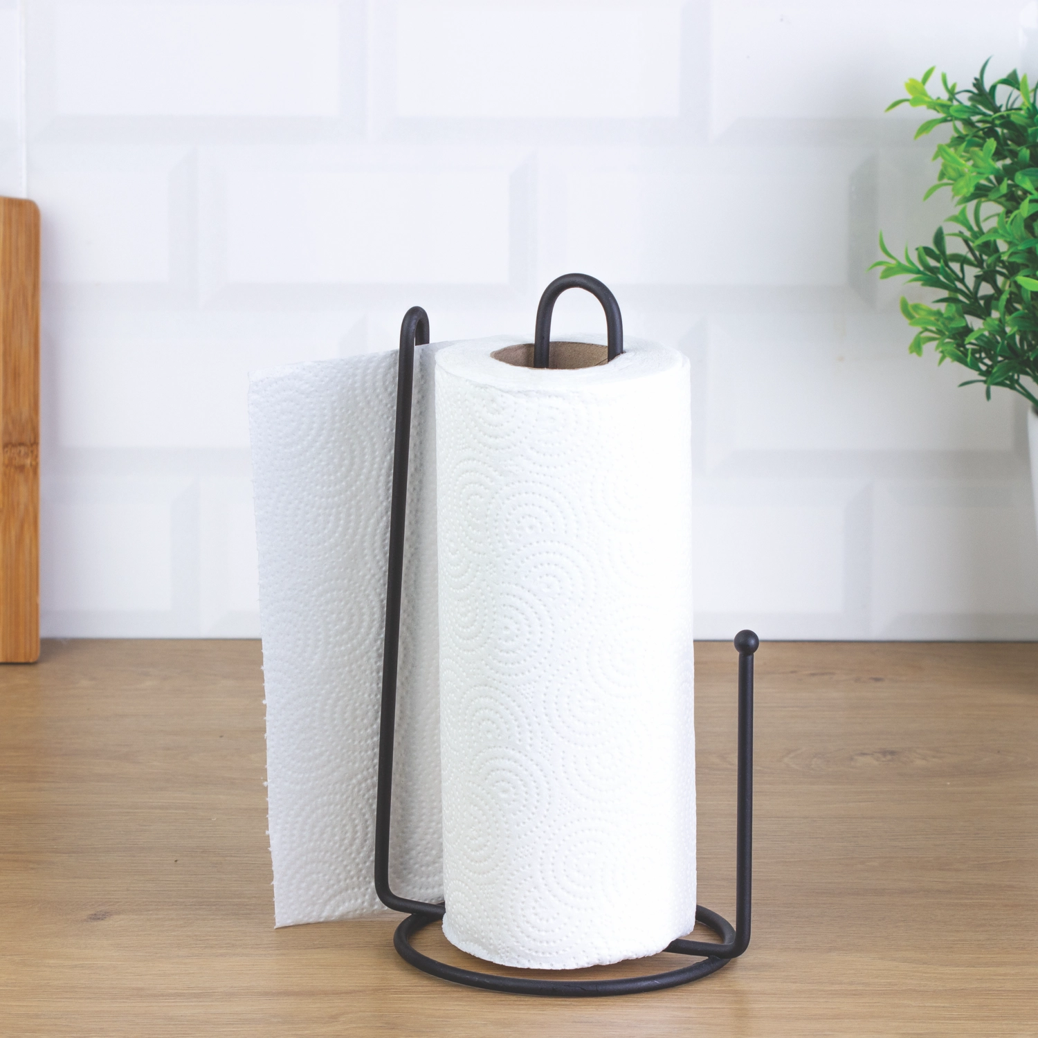 V kuhINjo vnesite funkcionalen dizajn s kovinskim stojalom za papirnate brisače v mat črni barvi. Kakovitna kovinska konstrukcija zagotavlja dolgo življenjsko dobo in trdnost, medtem ko bambusov element doda naraven poudarek in zmehča industrijski videz. Zaradi pametno oblikovane konstrukcije lahko lističe udobno trgajte z eno roko, kar boste cenili pri kuhanju in čiščenju.