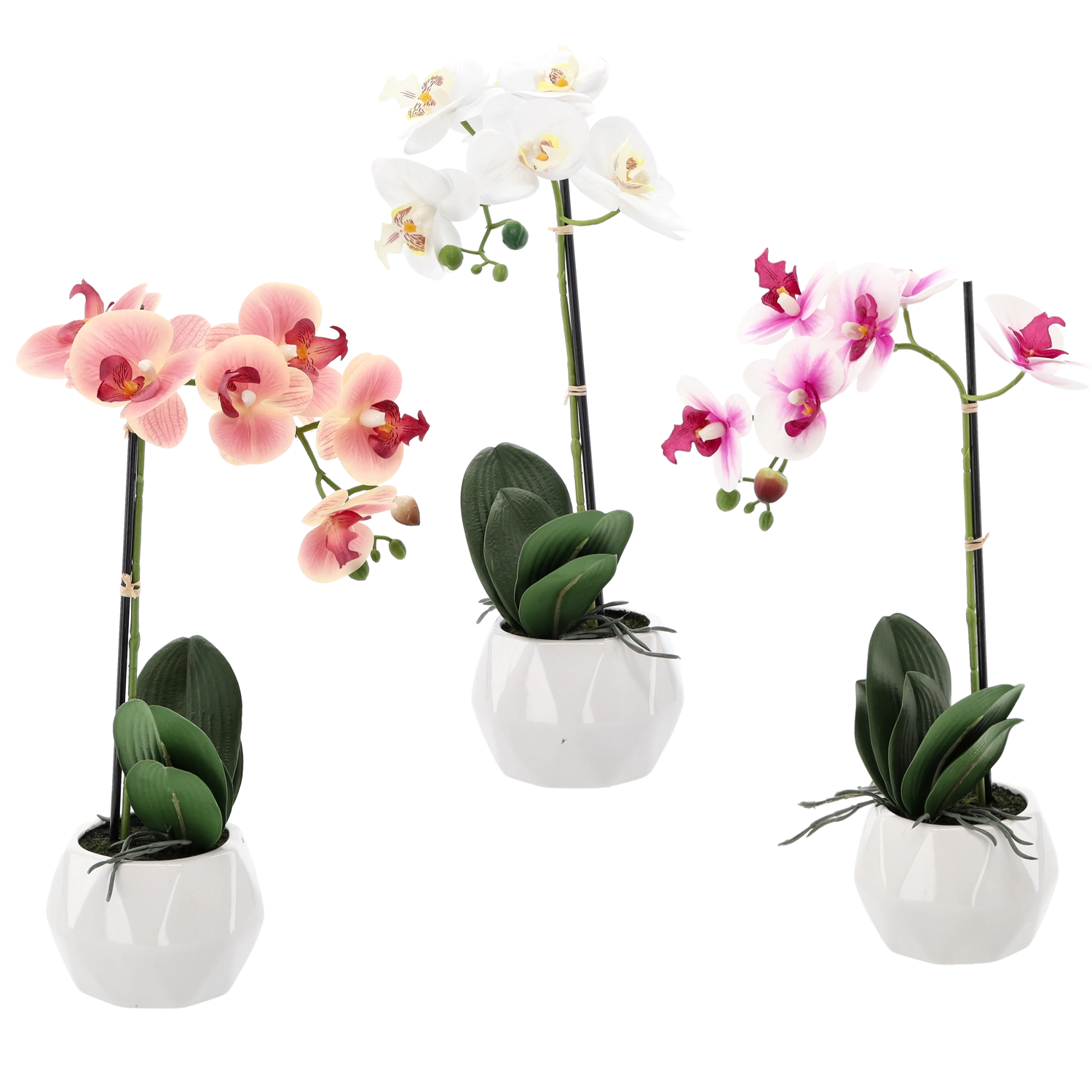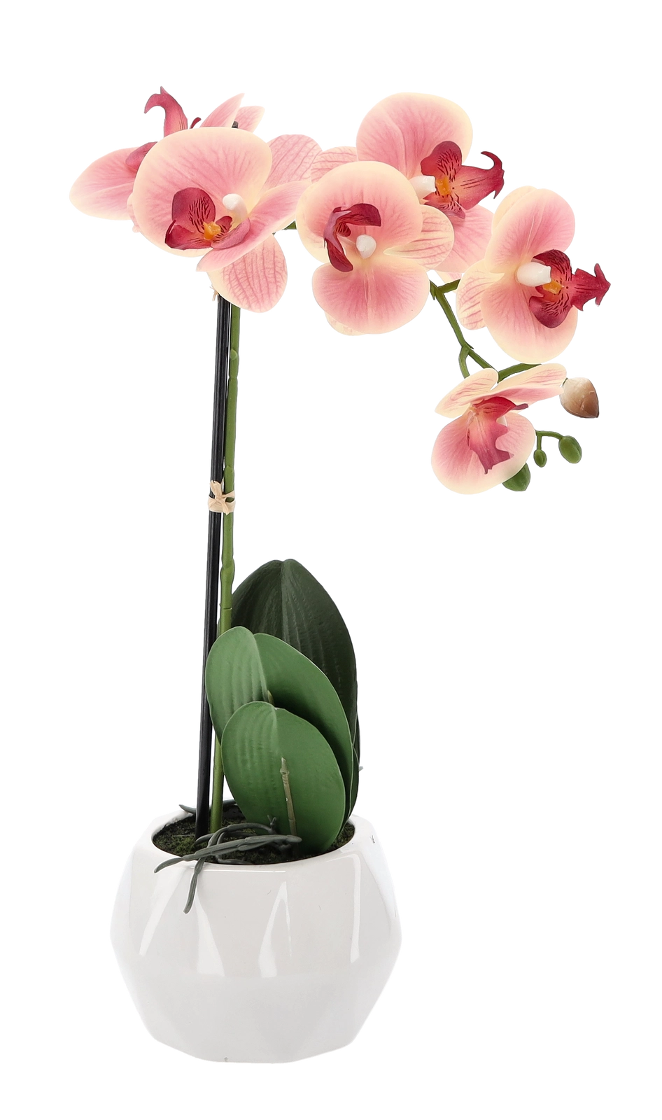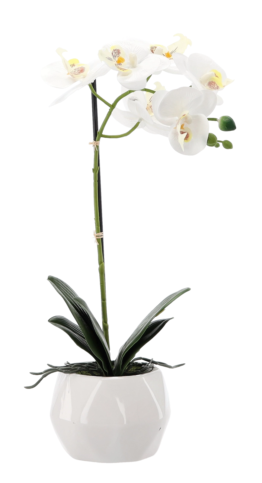 V svoj dom ali pisarno vnesite pridih elegance z orhidejo, ki je videti kot živa, hkrati pa ne potrebuje nobenega vzdrževanja. Realistični detajli cvetov in listov zagotavljajo naraven videz, medtem ko bel lonček poudari moderen slog in se zlahka vklopi v vsak interier.
