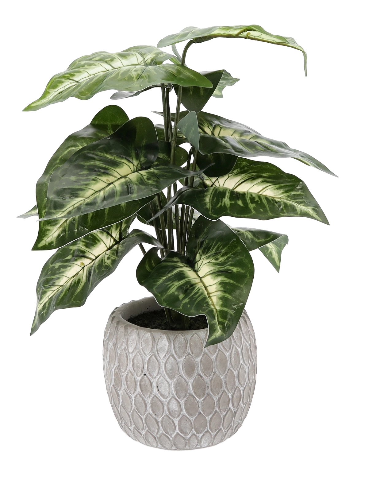 Veliki, pisano zeleni listi z izrazito žilnatostjo delujejo naravno in poživijo vsak kotiček doma ali pisarne.