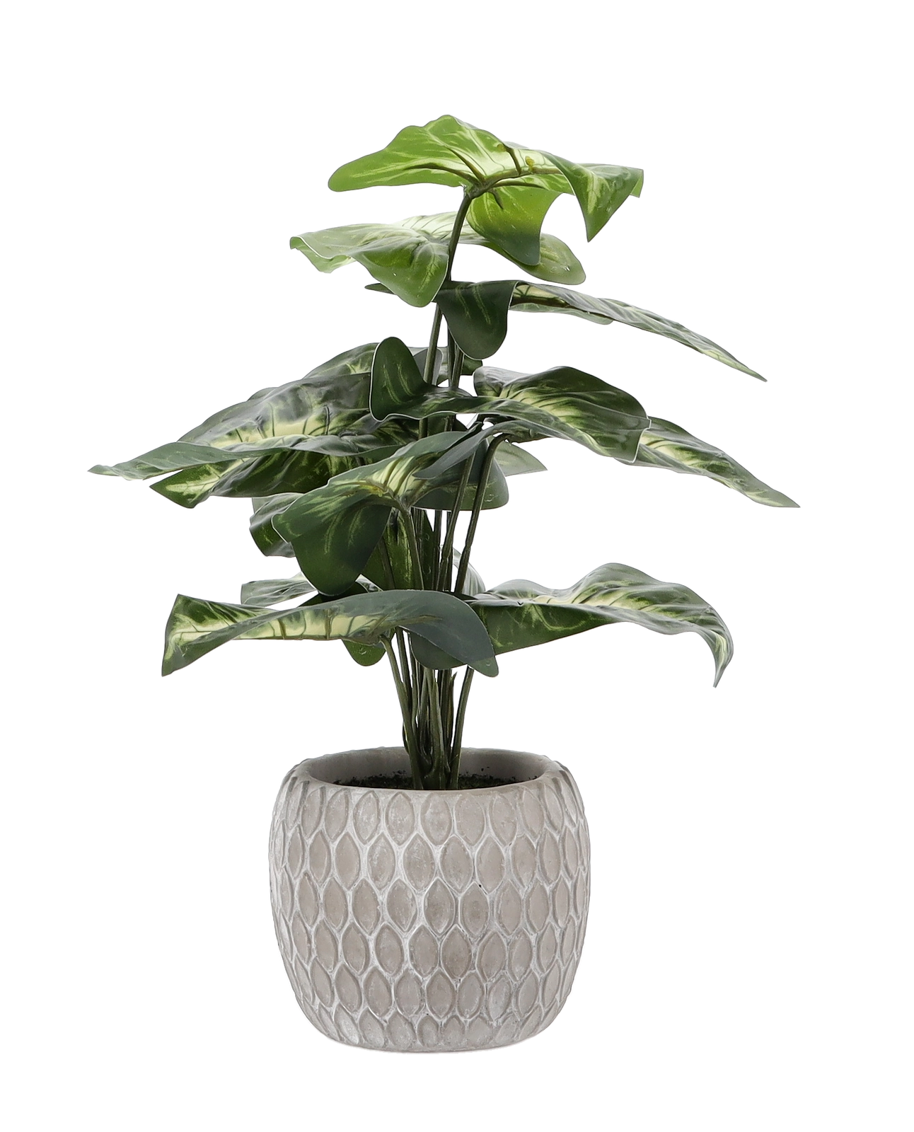 Ta elegantna umetna rastlina vnese naraven poudarek v vsak prostor brez potrebe po zalivanju in negi. Realistično oblikovani in obarvani listi na več steblih delujejo sveže skozi vse leto, medtem ko nežno strukturiran lonček v sivem odtenku stilsko dopolni moderne in klasične interierje.