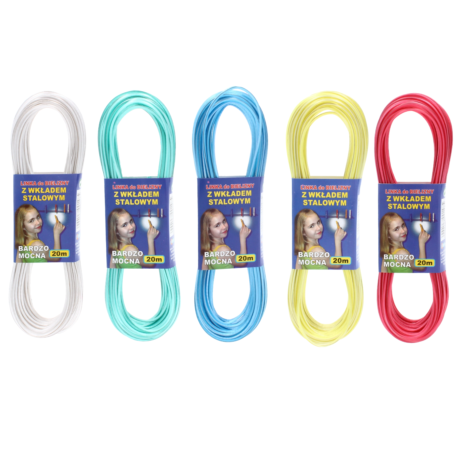 Praktična in trpežna vrvica za perilo z jeklenim jedrom dolžine 20 metrov zagotavlja visoko nosilnost in dolgo življenjsko dobo v notranjih in zunanjih prostorih. Površina iz PVC ščiti perilo pred umazanijo, ne pušča madežev in se zlahka čisti. Vrvica je odporna na vremenske vplive – ne rjavi, se ne razteza in zanesljivo drži tudi težje kose oblačil, kot so mokri puloverji ali brisače.