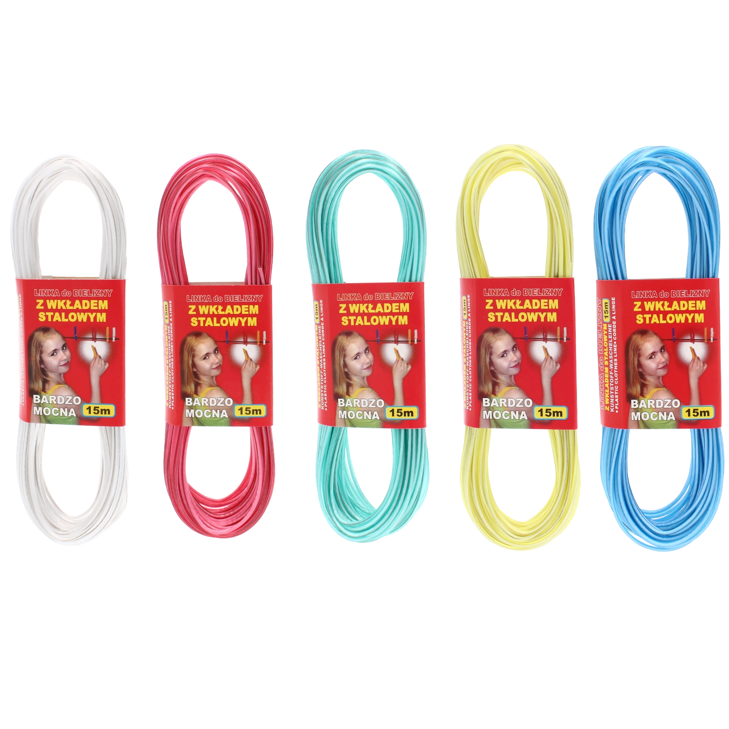 Ta vrv za perilo z jeklenim jedrom, dolžine 15 metrov, je zanesljiva rešitev za vsakodnevno sušenje perila. Trdno jekleno jedro zagotavlja visoko nosilnost in minimalno raztezanje, medtem ko odporna PVC površina ščiti pred vlago, dežjem in UV-sevanjem.
