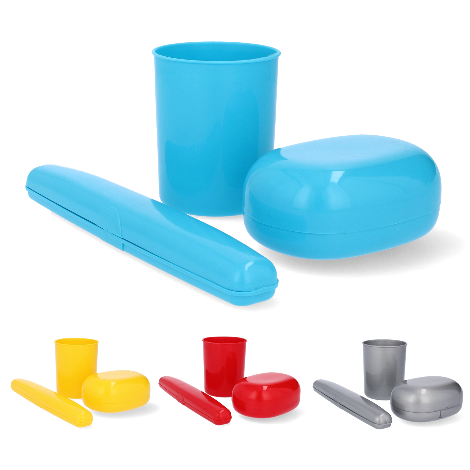 Organizatorji so izdelani iz vodoodpornega PVC, ki ščiti vsebino pred vlago in umazanijo. Različne velikosti se prilagodijo vašim potrebam – od manjših stekleničk do večjih toaletnih pripomočkov. Največji etui je opremljen s praktičnim ročajem za udobno prenašanje v telovadnico, na bazen ali na dopust.