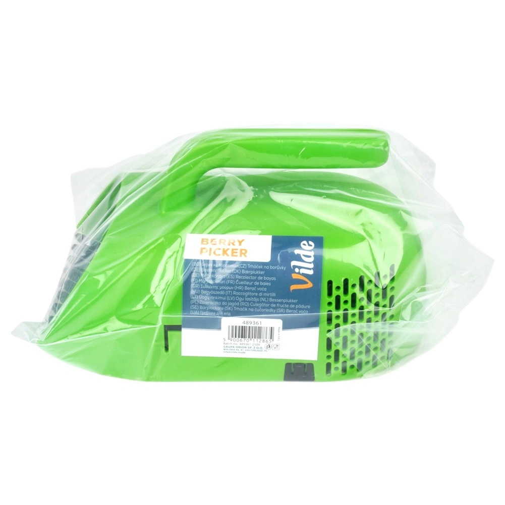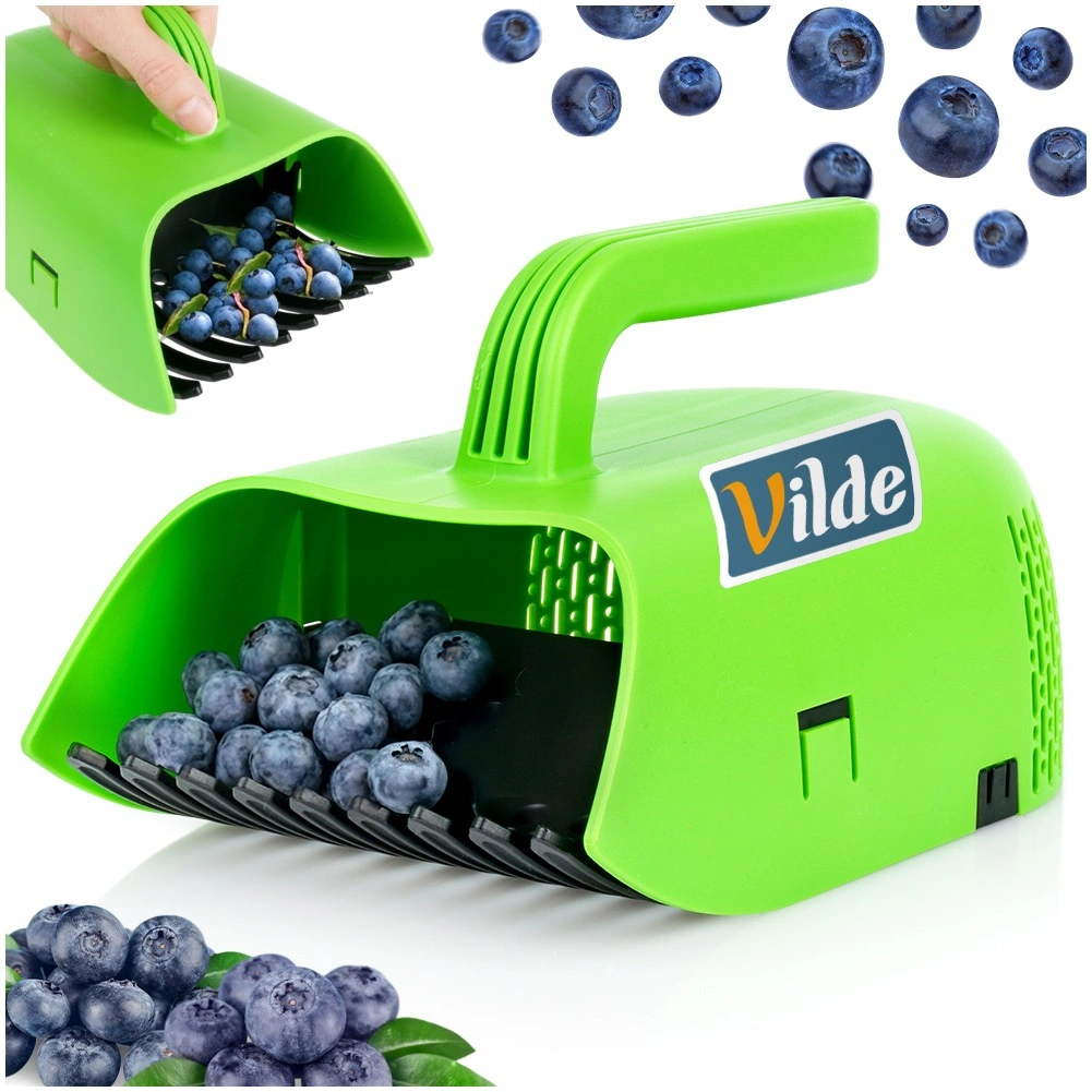 Praktičen nabiralnik za jagodičevje za hitro in udobno obiranje. Zahvaljujoč ergonomskemu ročaju in posebnemu glavniku zlahka loči plodove od pecljev, medtem ko jagode varno ostanejo v notranjosti zbiralnika. Lahka in vzdržljiva plastična zasnova v zeleni barvi s črnim glavnikom je preprosta za upravljanje in čiščenje ter je odlična za borovnice, ribez, aronijo in gozdne sadeže.