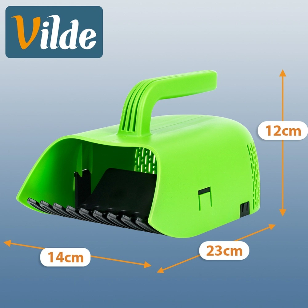 Pospešite obiranje jagodičevja z lahkim in vzdržljivim nabiralnikom Vilde. Posebej oblikovan glavnik nežno izčeše plodove iz grmov in jih usmeri naravnost v notranjo komoro, kjer ostanejo brez nezaželenih listov in vejic. Ergonomski ročaj zagotavlja zanesljiv oprijem in udobno manevriranje tudi pri daljšem delu.