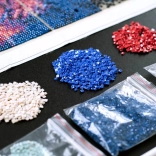 Platno ima čitljive simbole in barvno legendo. Vsaka vrečica s kamenčki je označena, zato je izbira prave barve hitra in brez napak.