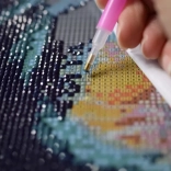 Delo je preprosto: zajemite vosek na konico aplikatorja, izberite pravo barvo kamenčkov glede na simbol in jih prenesite na platno. Postopoma boste izrisali celoten motiv v učinku 3D/5D mozaika, ki se čudovito blešči in lovi svetlobo.
