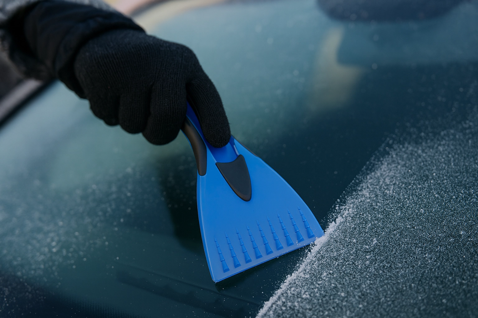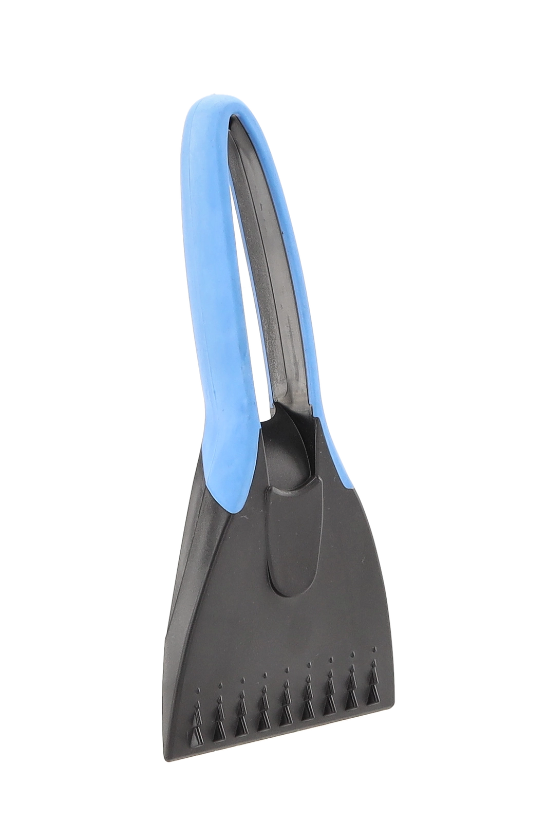 Nazobčani zobje hitro razbijejo debelo plast ledu, medtem ko širok gladek rob steklo v hipu dokončno očisti brez lis.