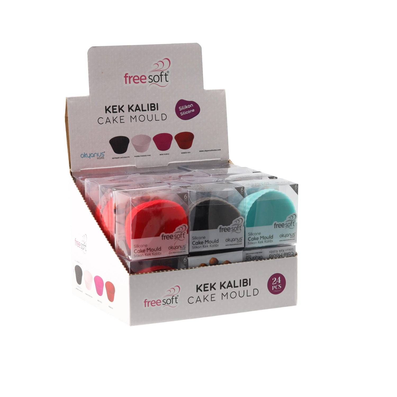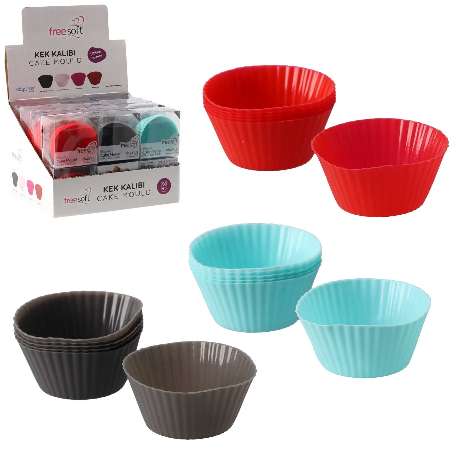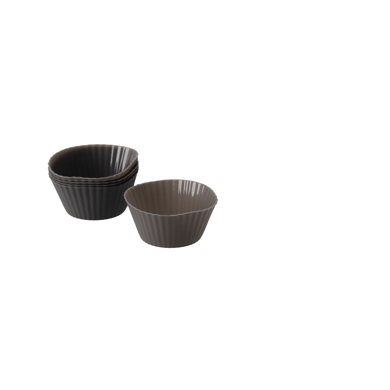 Praktičen komplet šestih silikonskih modelčkov za mafine olajša peko doma in na poti. Zahvaljujoč neprijemljivemu silikonu se testo ne prijema, mafini se zlahka vzamejo iz modelčkov in modelčki se hitro čistijo. So toplotno odporni, zdravju neškodljivi in primerni za pomivalni stroj. Dobavljeni v mešanici barv.