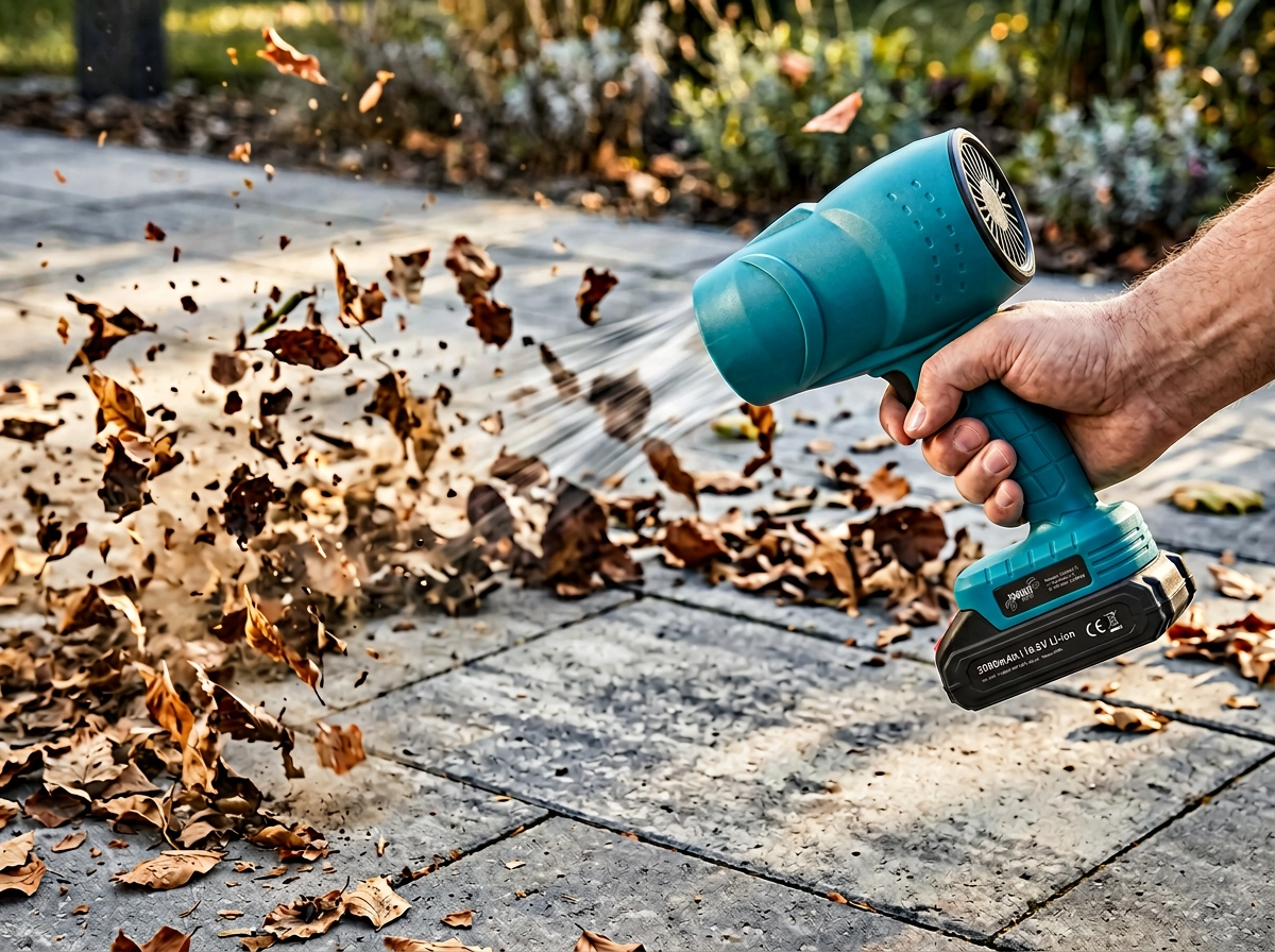 Moč 800 W in visoke vrtljaje motorja v hipu očistijo delovno površino, orodje in terase. Idealno za prah, žagovino in suho listje.