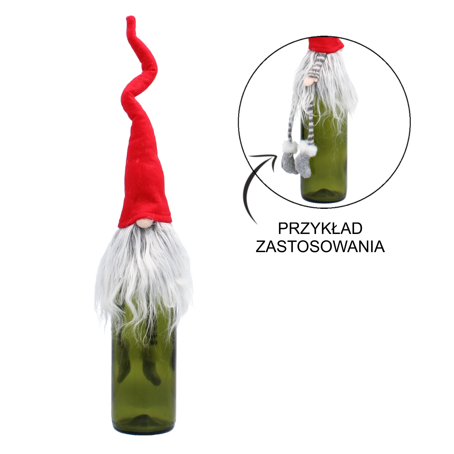 Univerzalna velikost ustreza večini standardnih steklenic vina, zato je odlična kot božično darilo ali kot namizna dekoracija, pa tudi za polico ali kamin. Po praznikih lahko škratek še naprej krasi notranjost in podaljšuje slovesno razpoloženje.