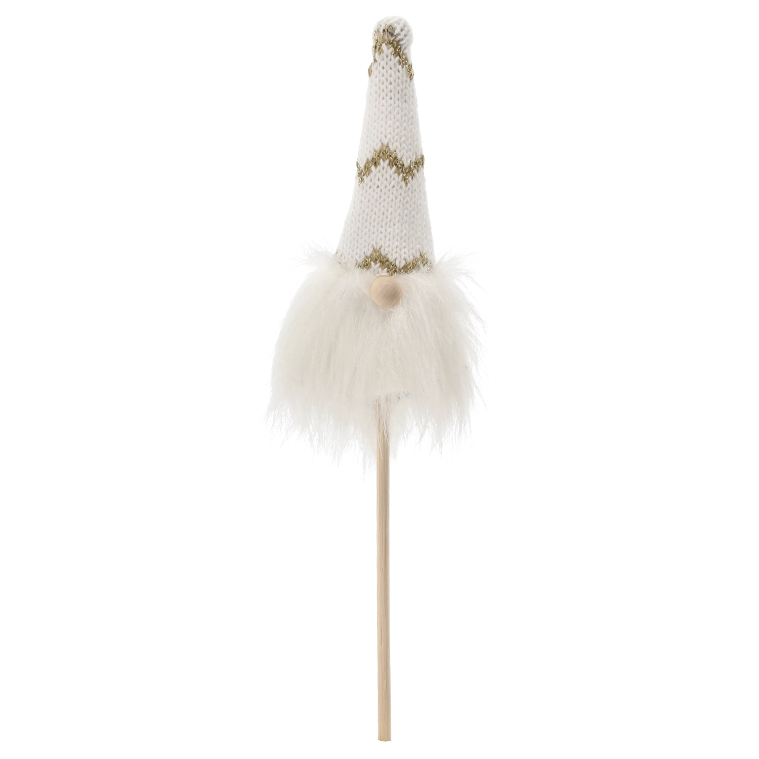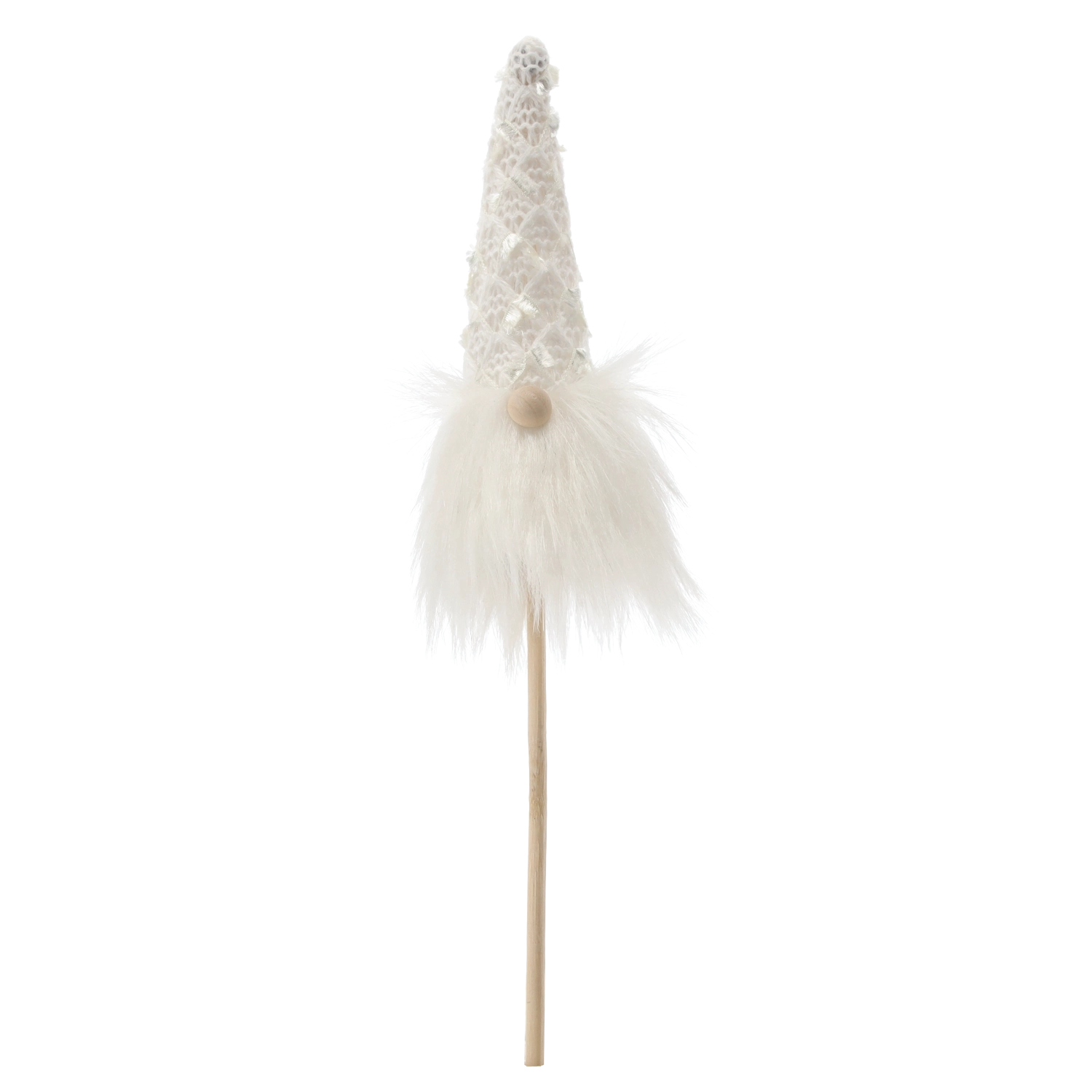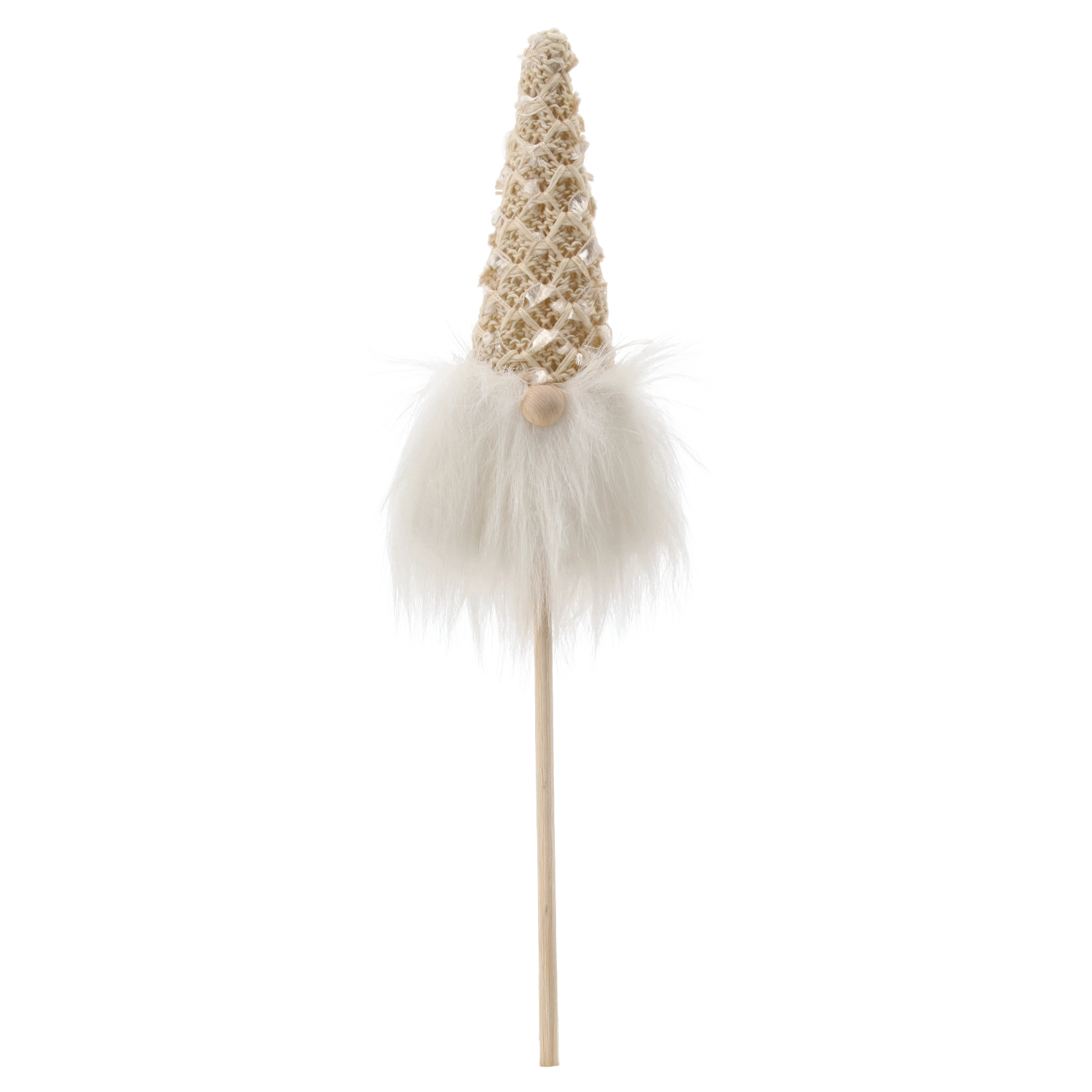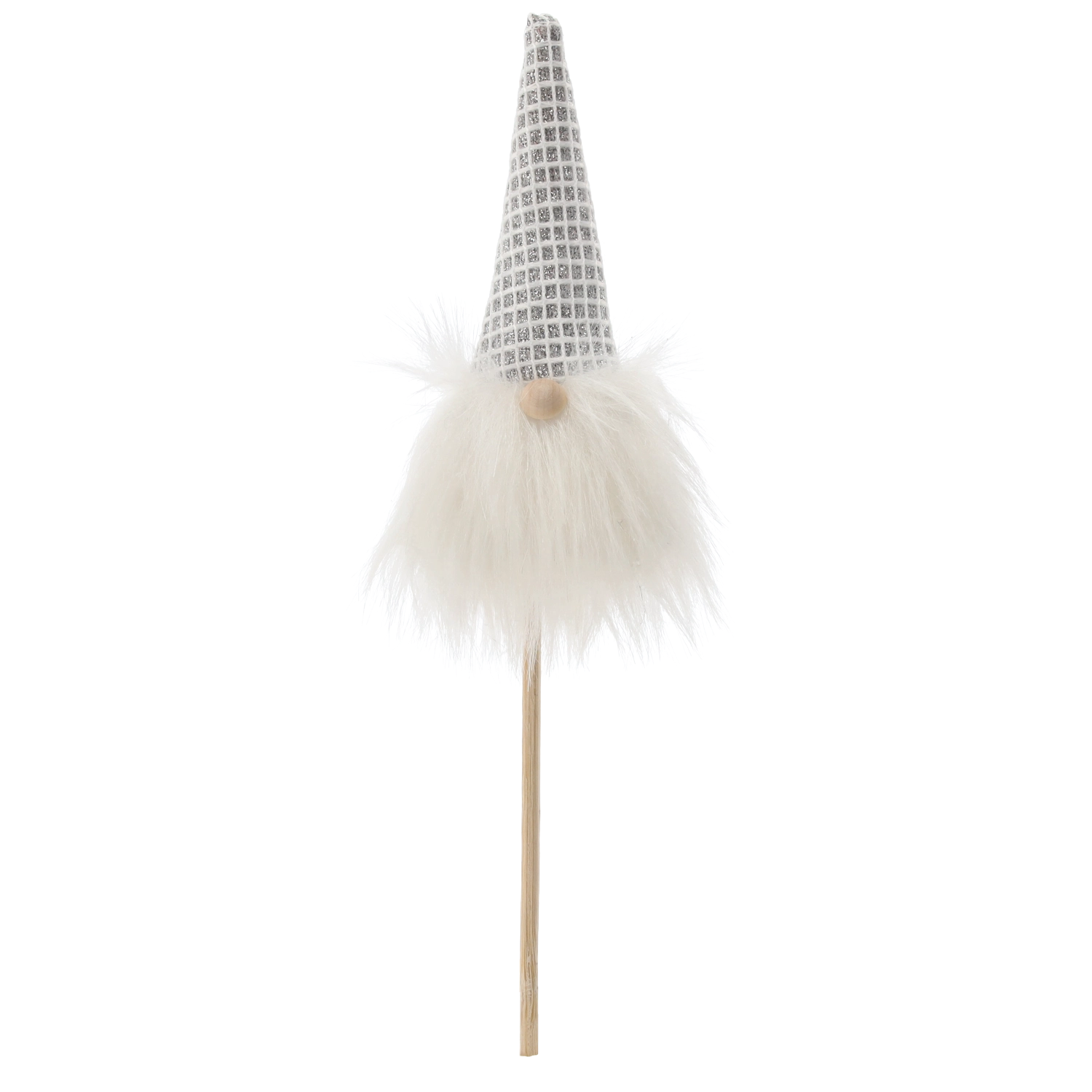 Polepšajte zimsko dekoracijo s prikupnim škratom na paličici, visokim 24 cm. Zaradi kompaktnih mer je odličen za lončnice, vence in praznične aranžmaje. Mehka kožušnata brada, tekstilna kapica z različnimi vzorci in lahka lesena paličica za enostavno zapičenje ga naredijo za univerzalno dekoracijo tako za tradicionalne kot sodobne interierje.