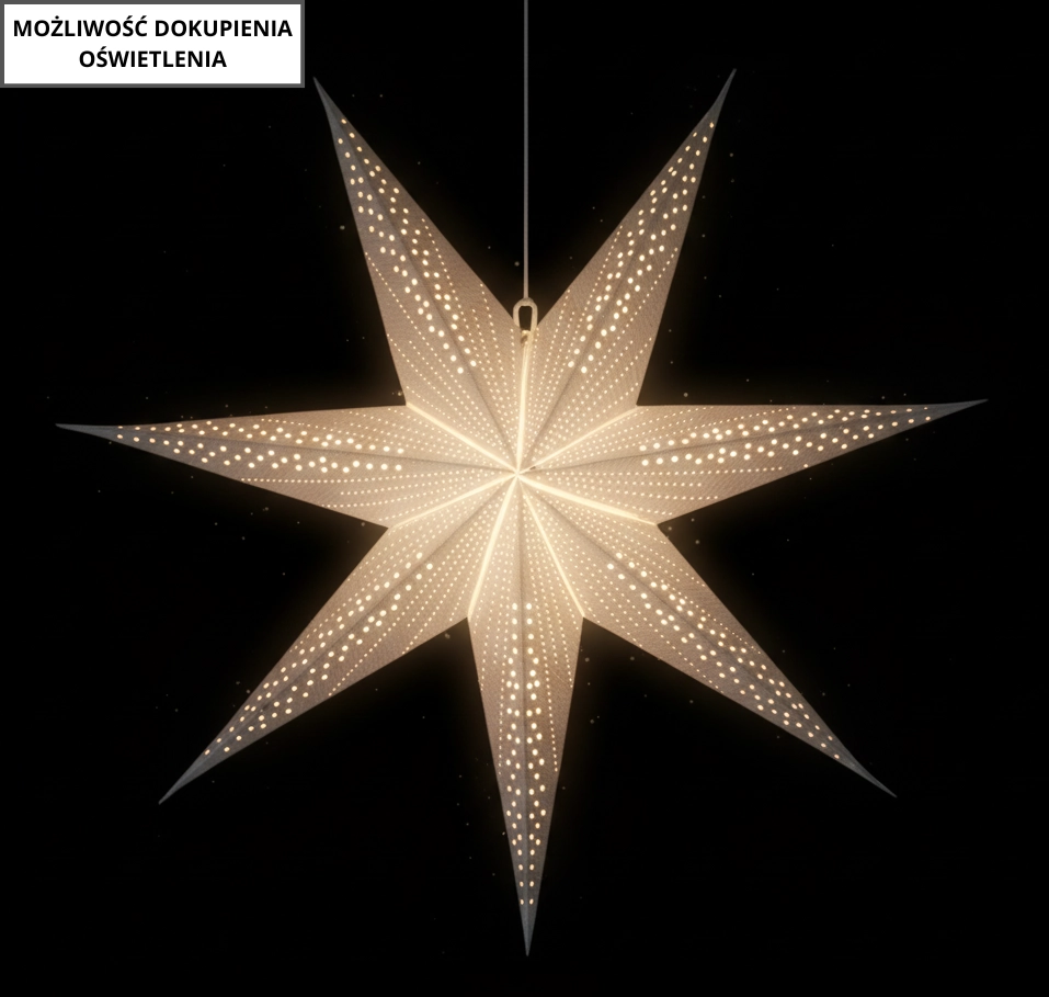 Ustvarite prijetno vzdušje med božičem in zimskimi večeri s stilno papirnato zvezdo v sivi barvi s premerom 60 cm. Zahvaljujoč elegantni zasnovi, lahkemu materialu in zložljivi konstrukciji je idealna za okna, izložbe in sodobne interne prostore.