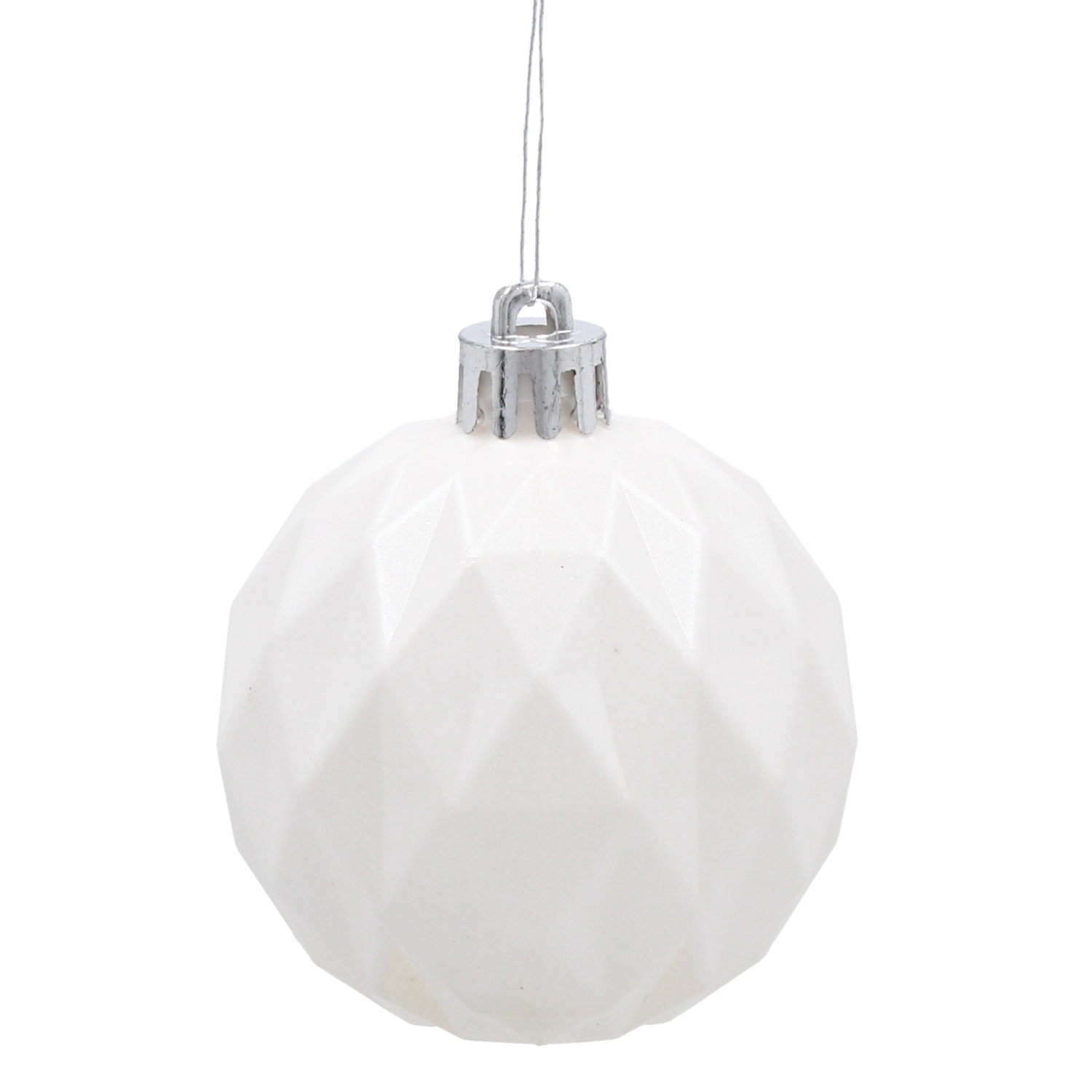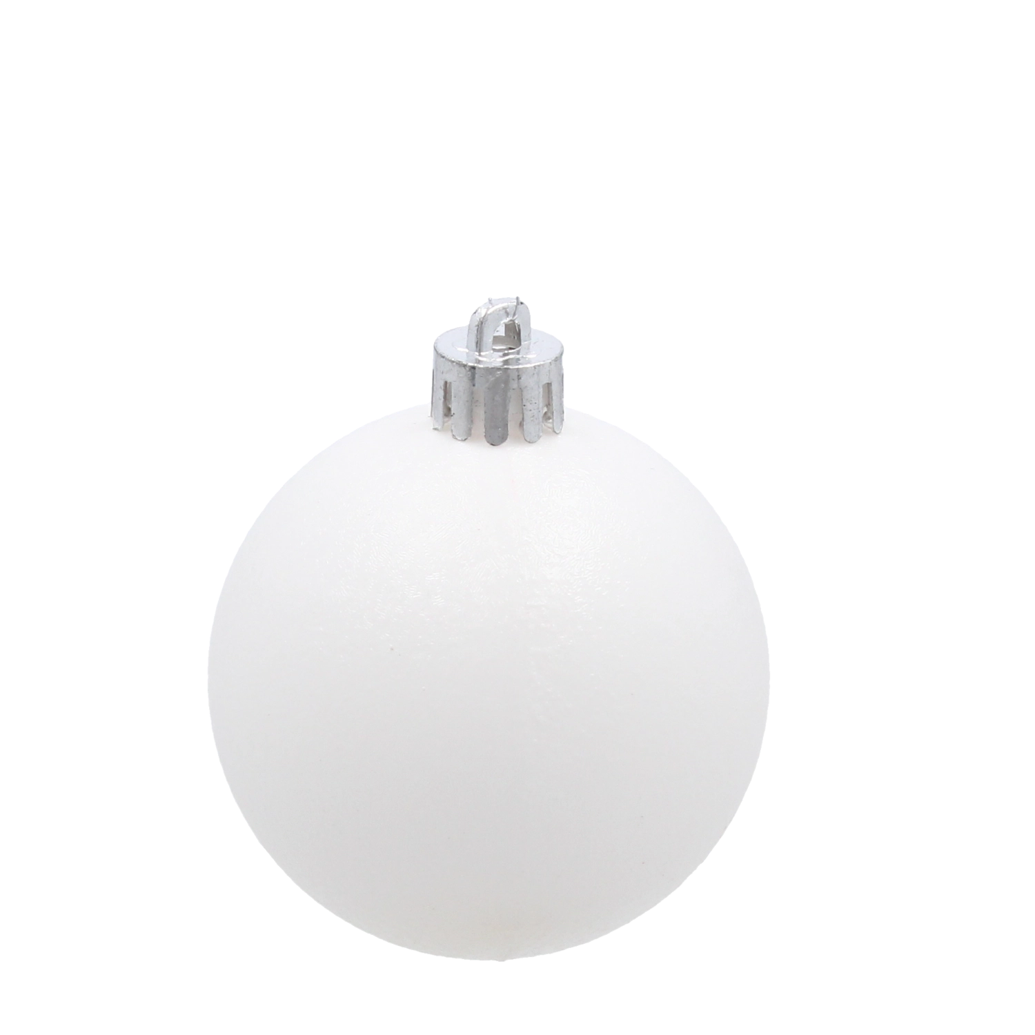 Ta brezčasni set belih okraskov z enotnim premerom 6 cm ponuja vizualno uravnoteženo in moderno dekoracijo. Vsaka bunkica je opremljena s srebrno zanko in vrvico za hitro obešanje na drevo, vence ali dekorativne veje. Zahvaljujoč plastiki, ki verodostojno posnema steklo, dobite razkošen videz brez tveganja razbitja.