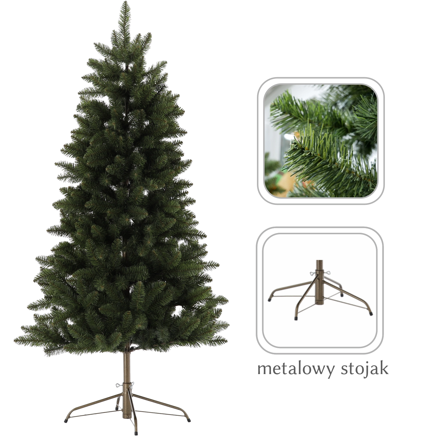 Drevo je zasnovano za udobno in varno okraševanje – stabilne veje brez težav nosijo božične okraske in svetlobne verige. Enostavna montaža in demontaža omogočata hitro pripravo na praznike ter kompaktno shranjevanje po njihovem zaključku. Del paketa je tudi čvrst stojalo , ki zagotavlja stabilnost celote.